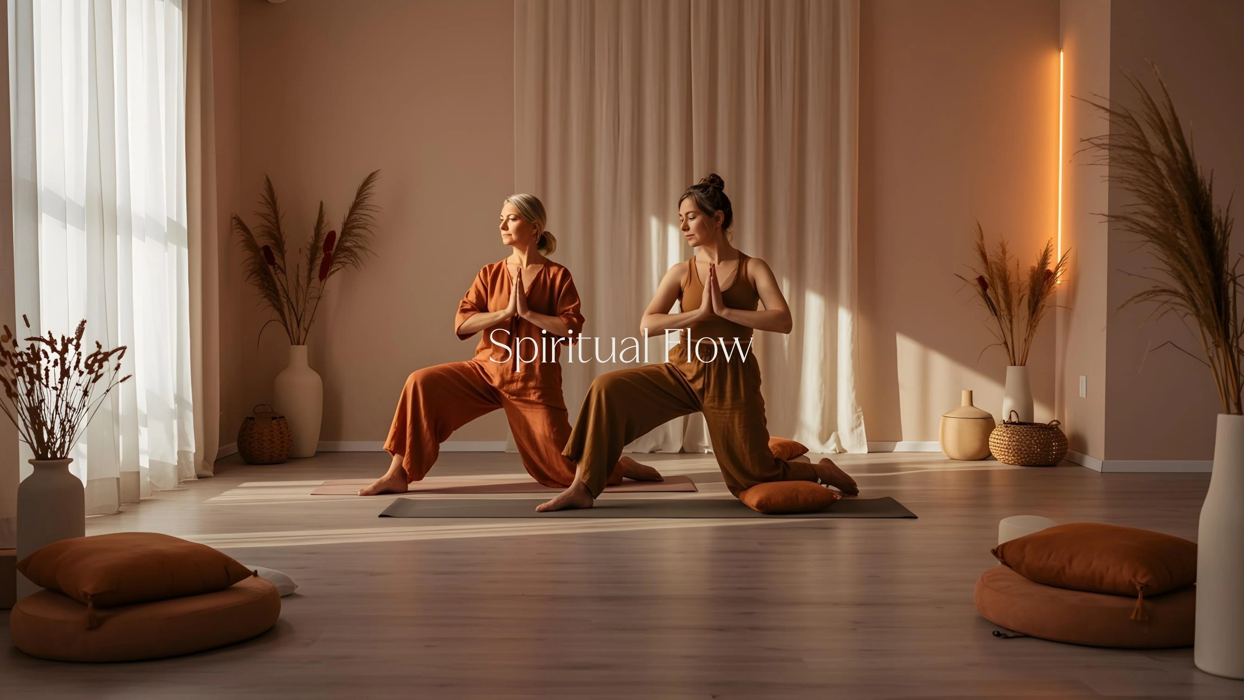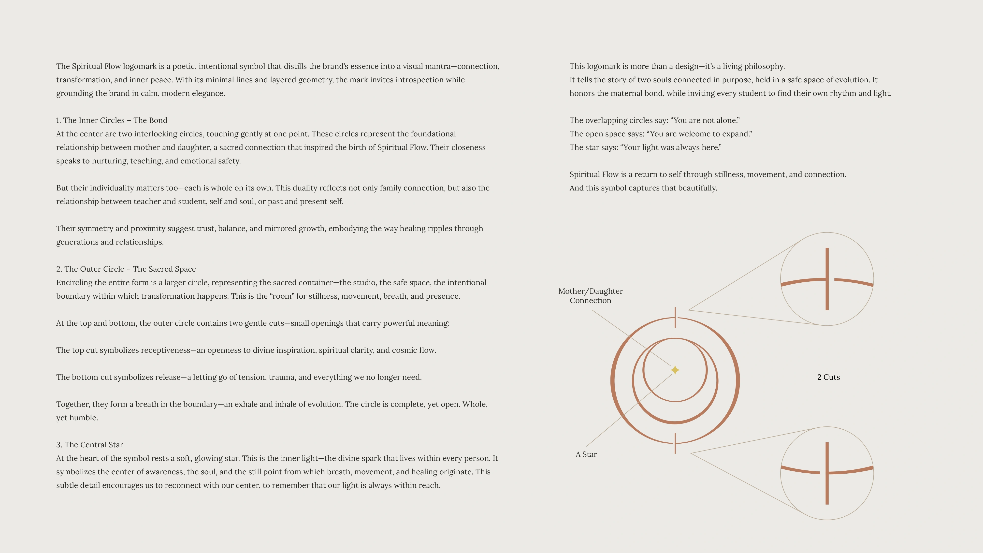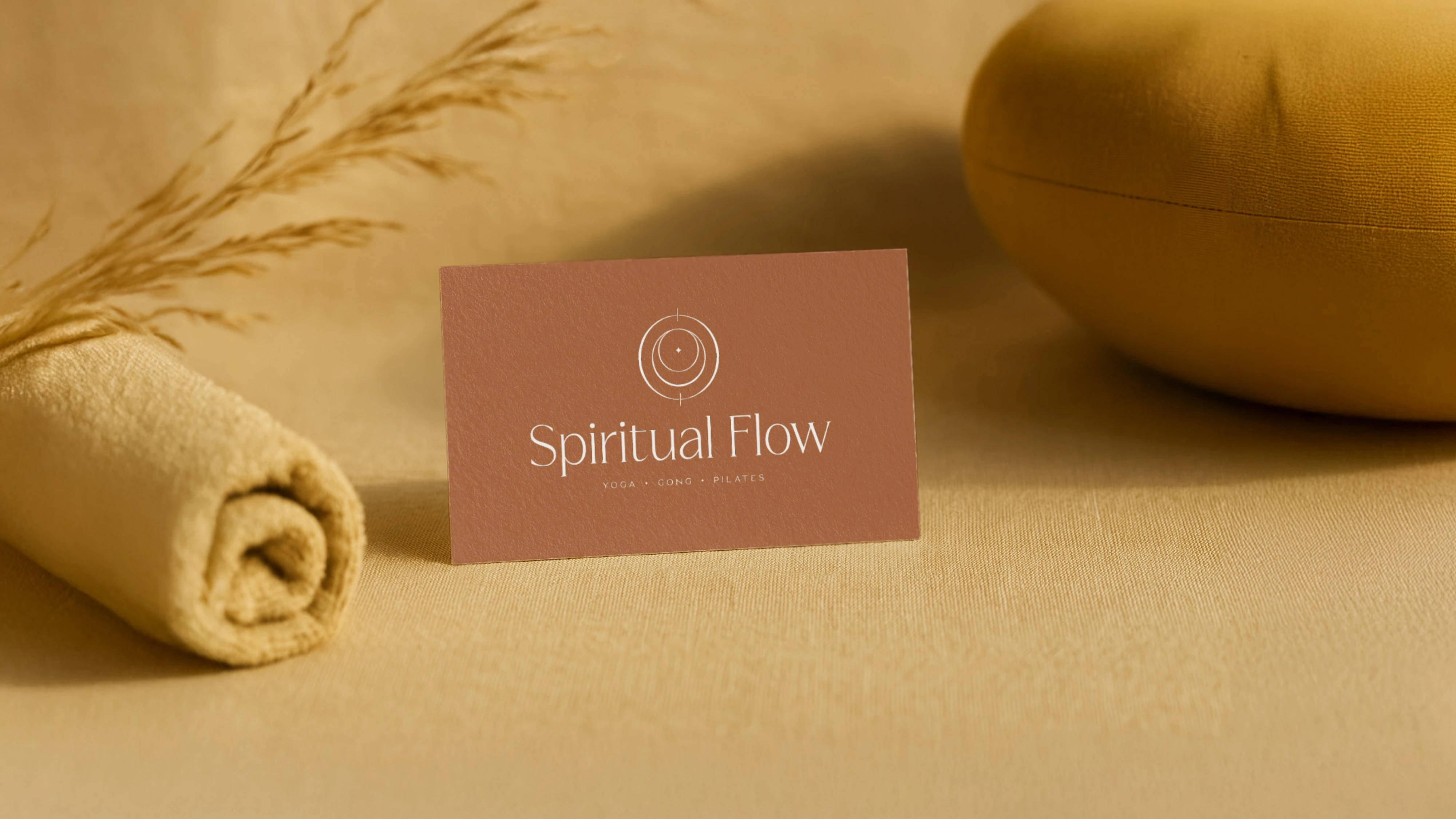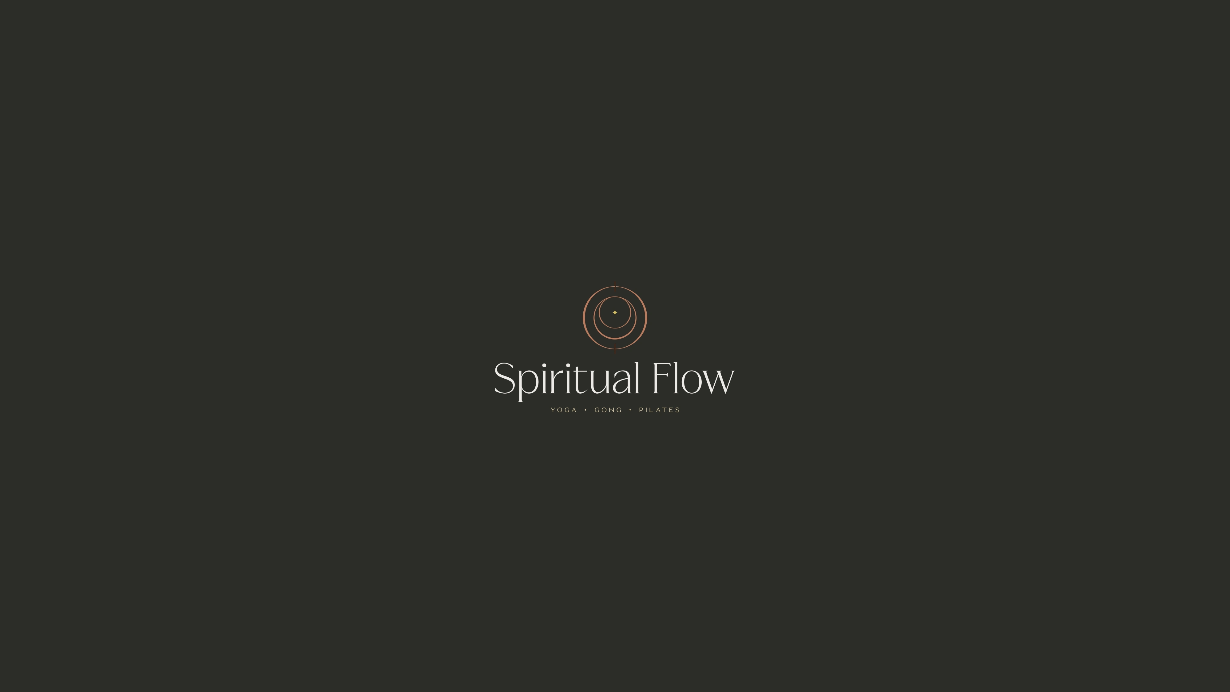 A calm, modern identity for Spiritual Flow, designed for yoga, pilates, and gong sessions with a clean mark, soft typography, and grounded tones.