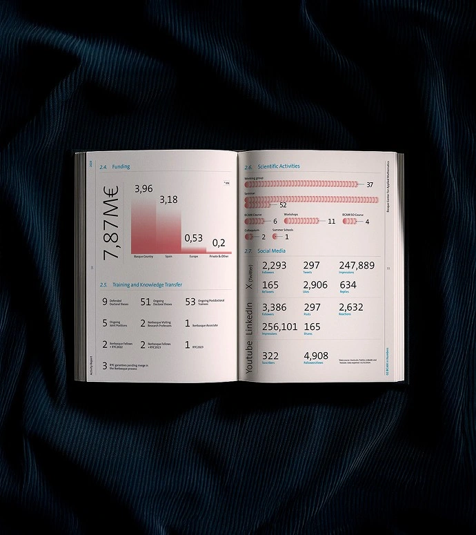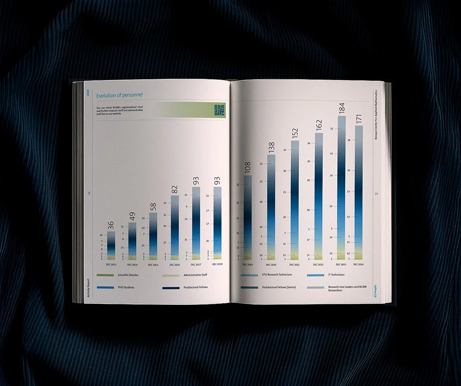 The main goal was to transform complex, data-heavy content into a visually engaging and accessible narrative. The design balances BCAM’s corporate identity with a more contemporary and dynamic approach: a clean and well-structured layout, a strong typographic hierarchy, and a color system based on bright gradients that bring rhythm and personality to the information.