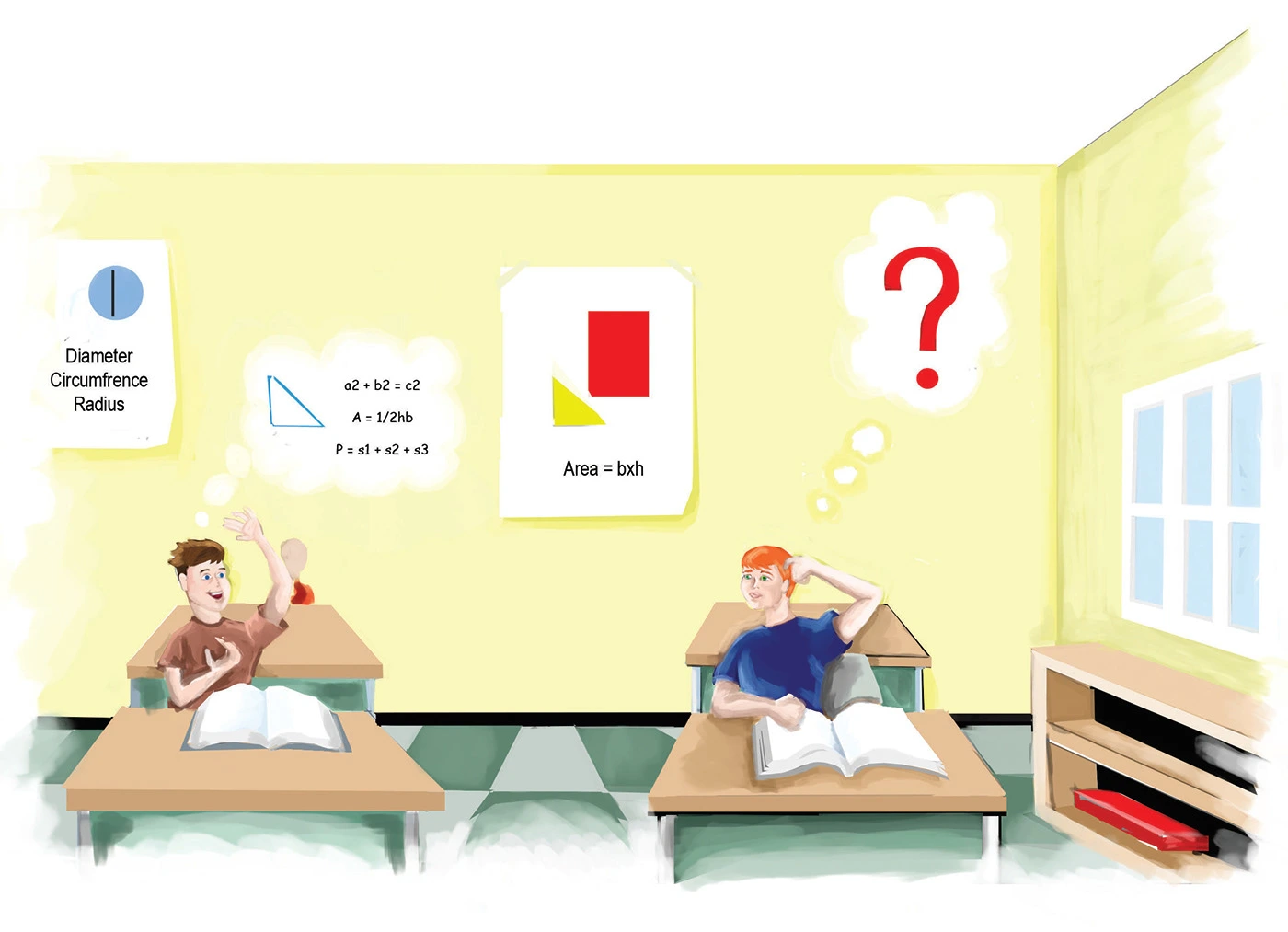 Realistic illustrations created for narrative about main character learning how math (favorite subject) can be applied to music, specifically playing guitar.