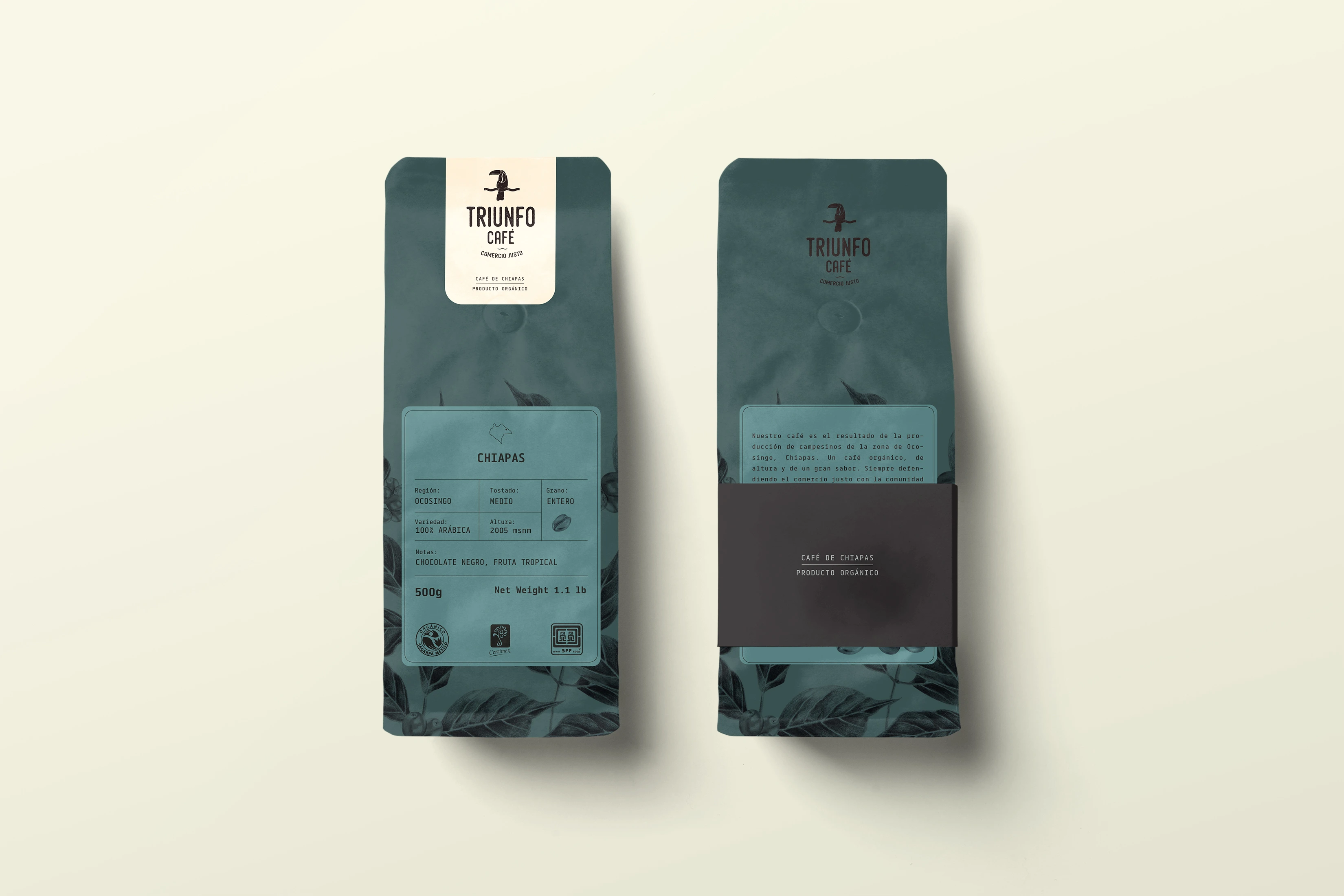 Branding project inspired by the protected reserve El Triunfo Chiapas, the goal was to create a mysterious and natural brand image for the coffee house.