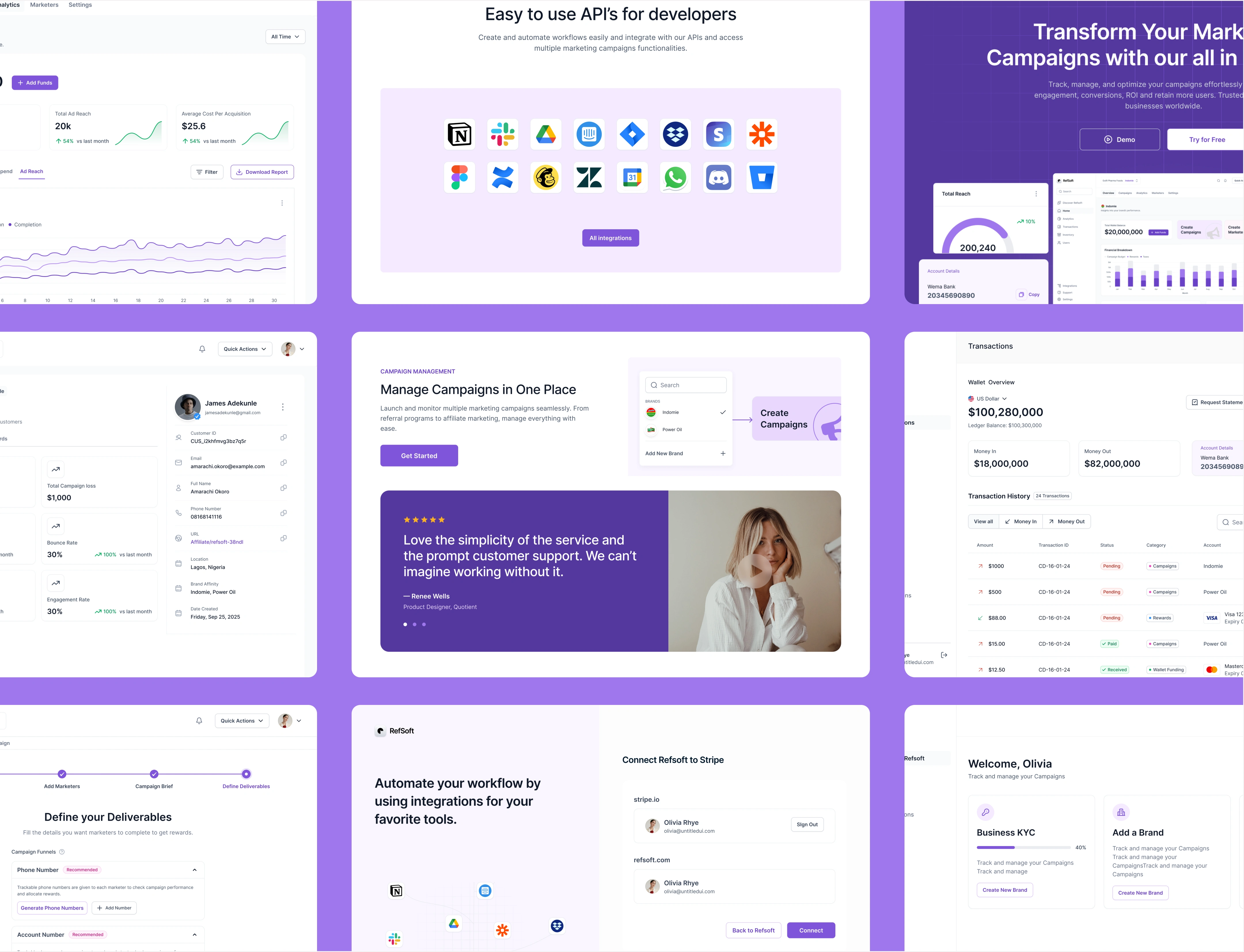 After my research, my solution was to design a standalone unified MVP that empowers businesses to track marketing ROI, streamline outreach, incentivize growth, and connect marketing to core operations, all without complexity.for multiple micro-saas applications. The platform is designed to be used for Offline Businesses that needs to get products sold quickly and reward marketers. It includes payment links, wallets, tier reward systems, advance campaign management, sales funnel, template builders etc.