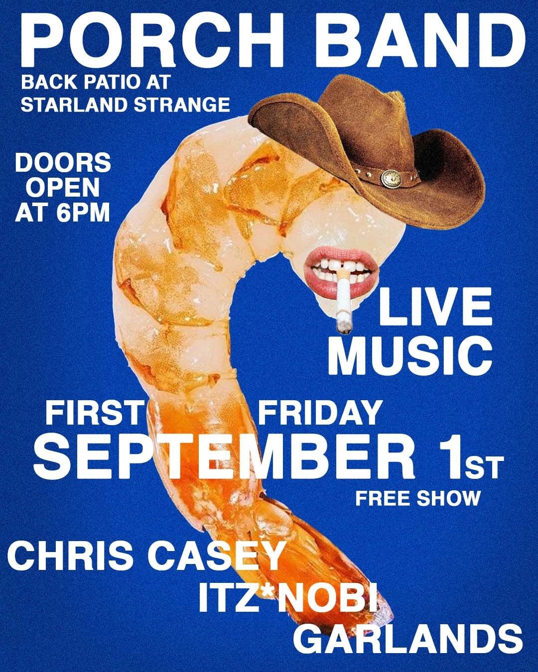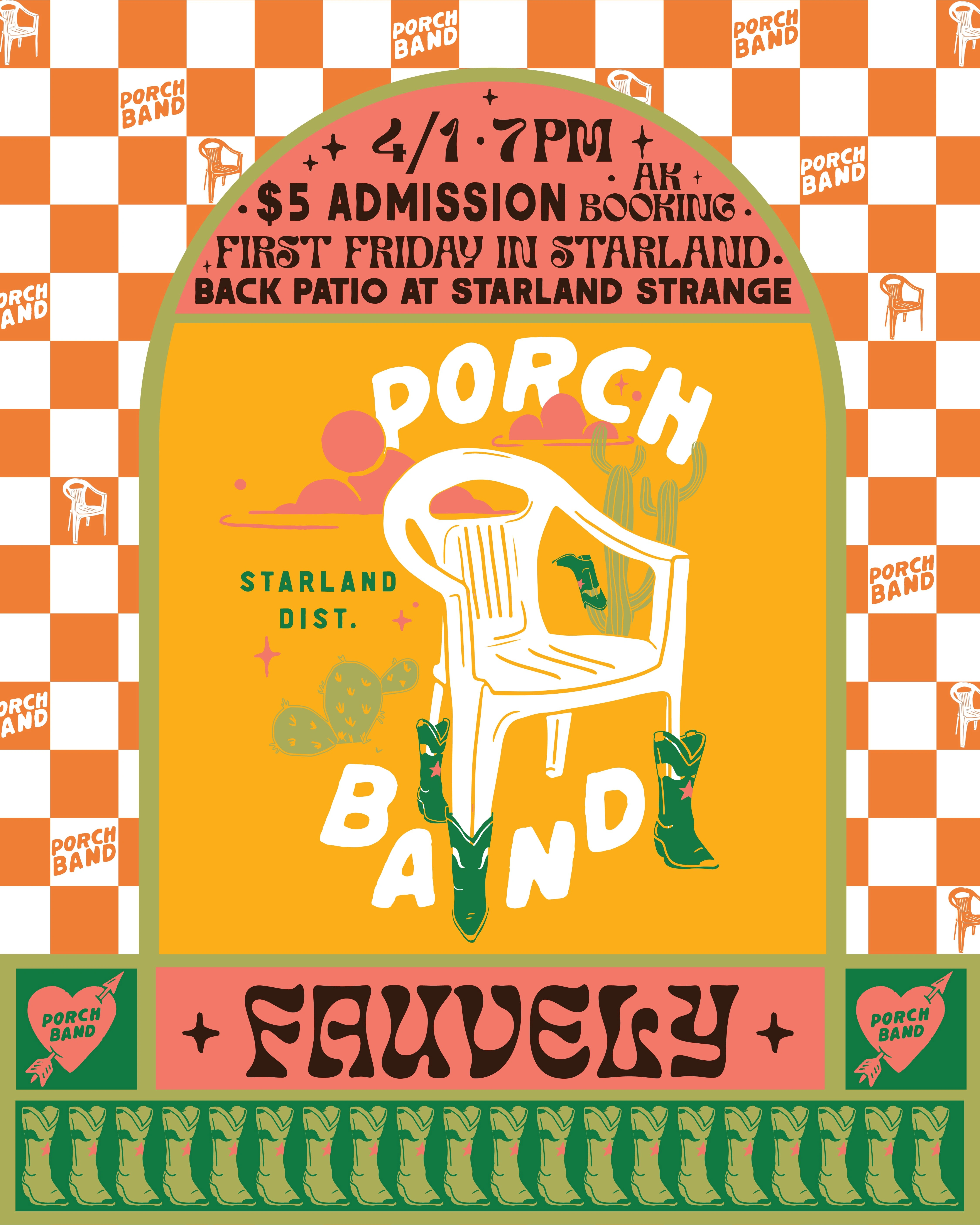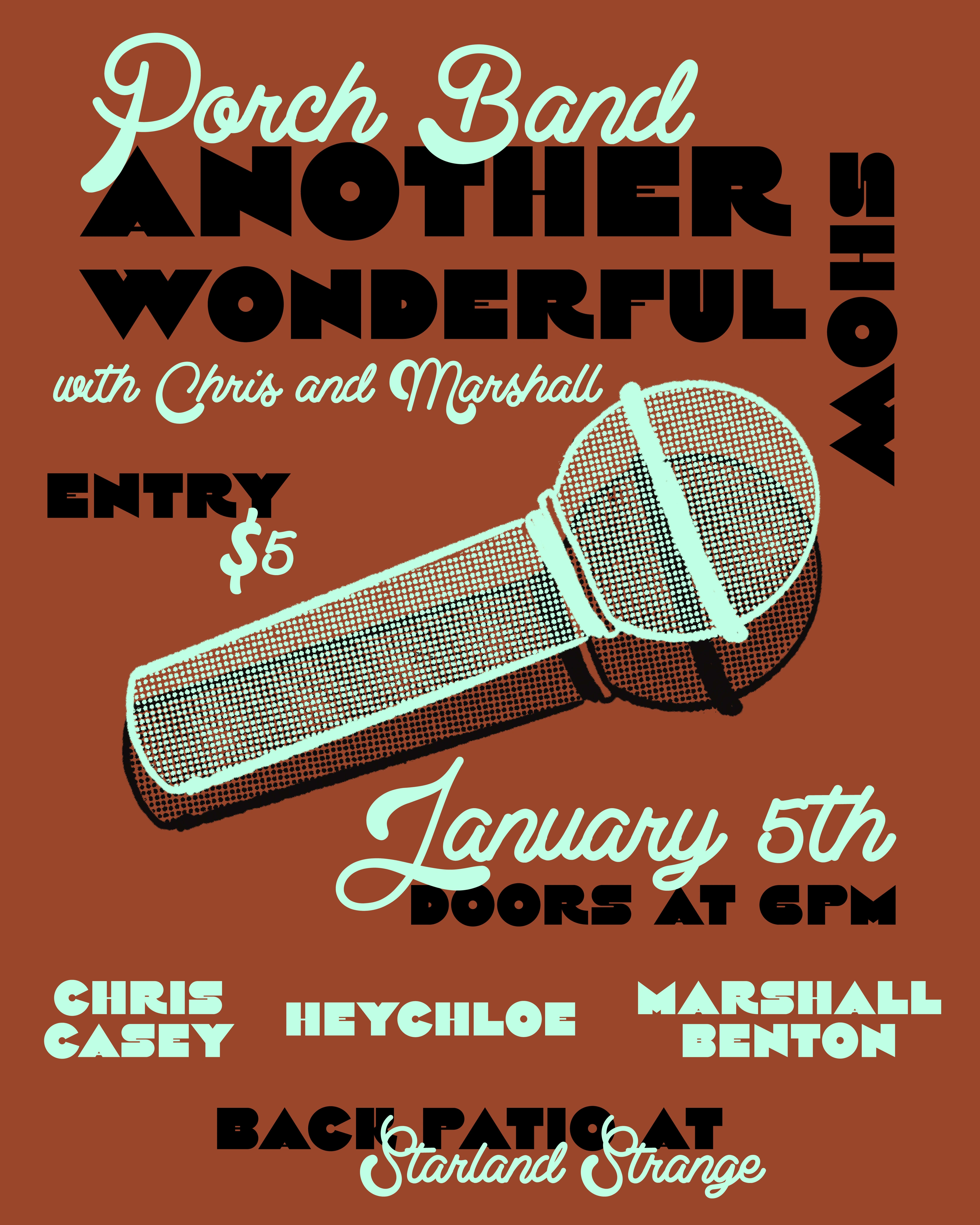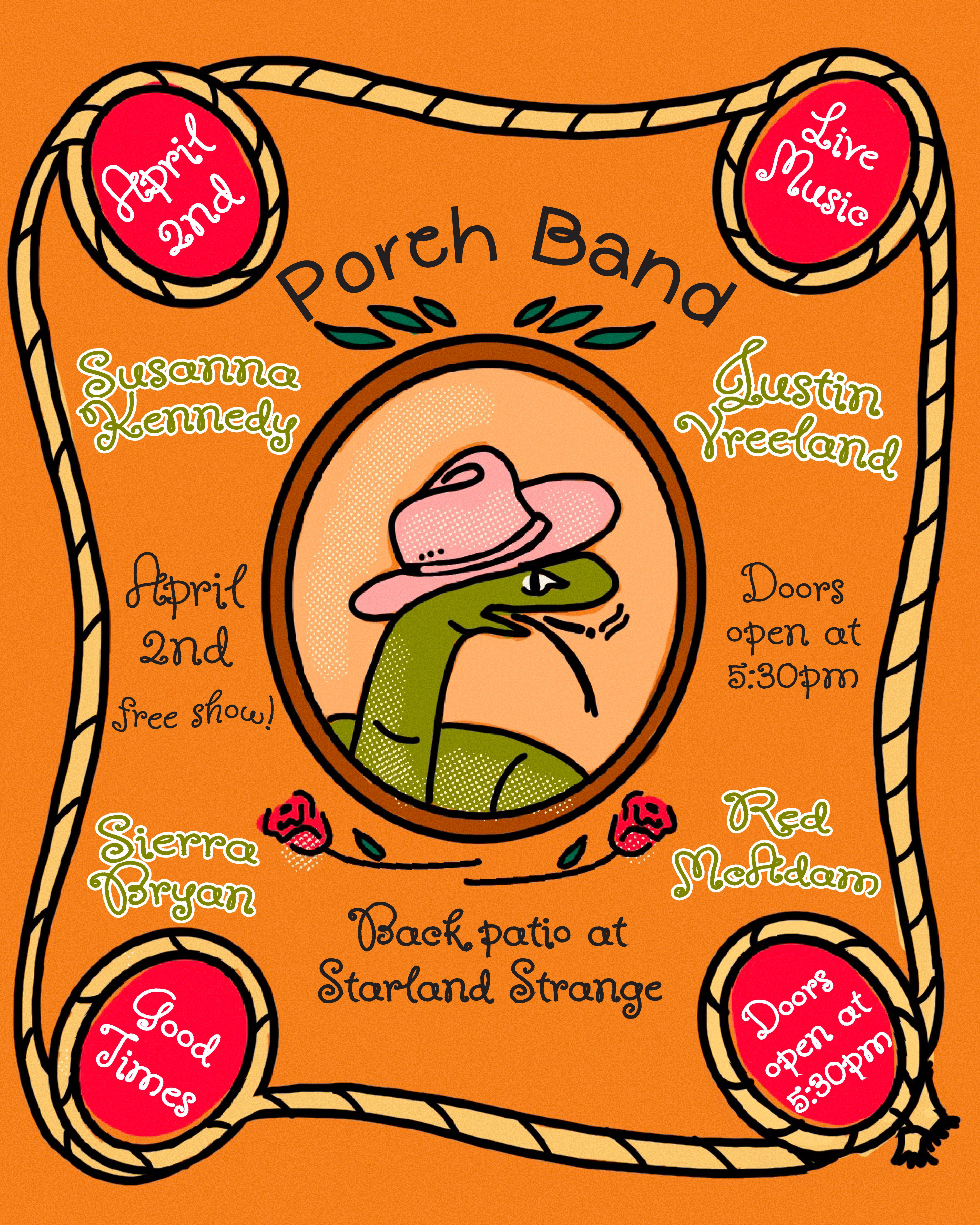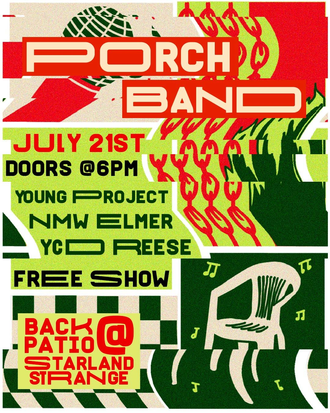 Poster designs for Porch Band, a music venue spot in Savannah GA