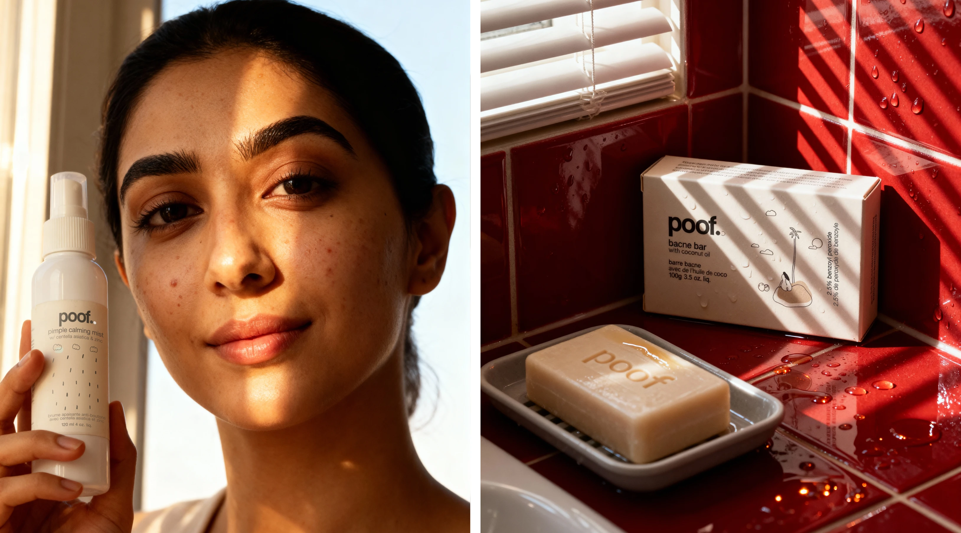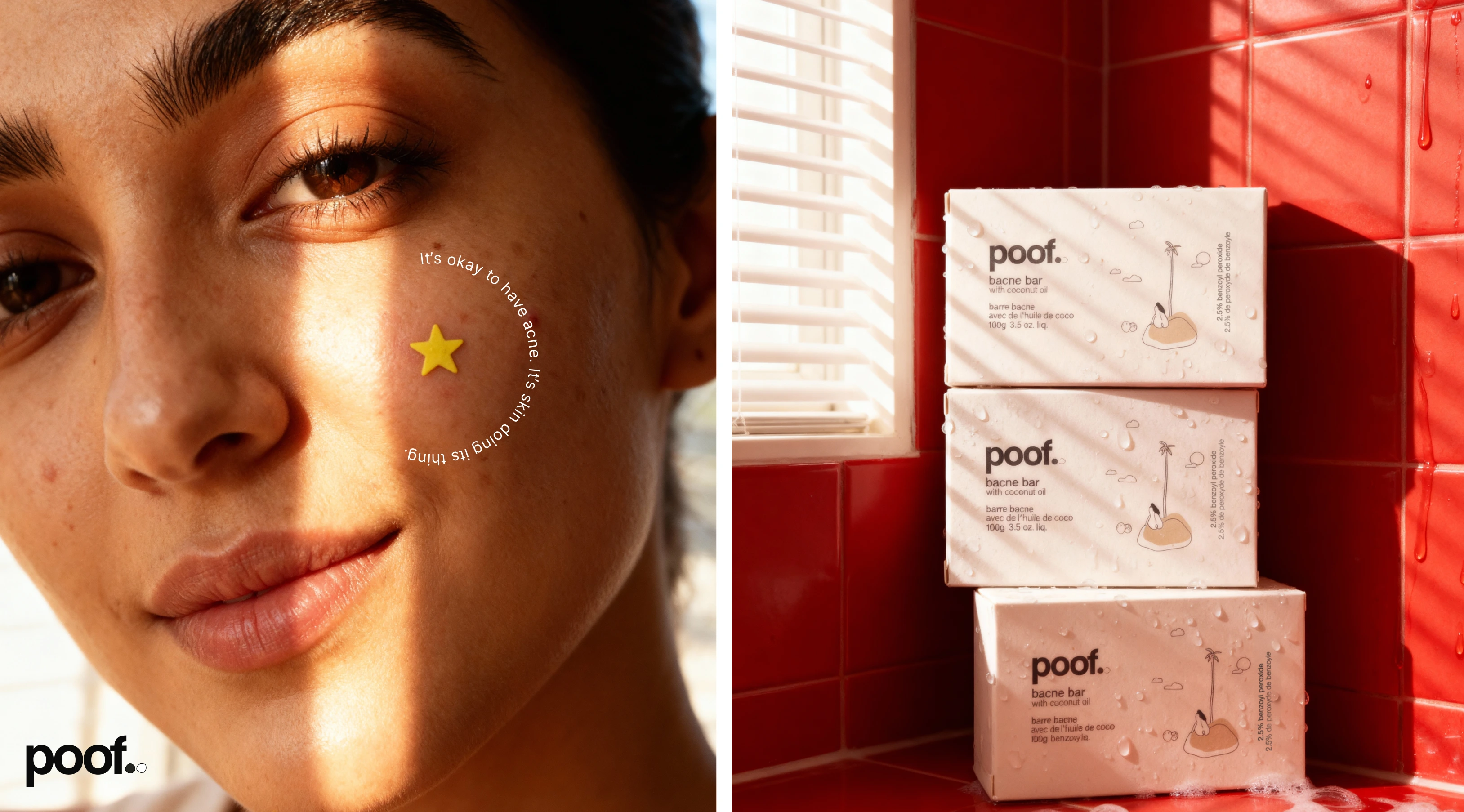 Poof is a local skincare brand that celebrates real, imperfect, and healing skin. When I discovered their mission — normalising acne and scars — I felt an instant connection. I collaborated with them as a creative director to create stunning, real-like content that Poof could use across their social and digital platforms without needing to hire influencers, UGC creators, or external agencies.