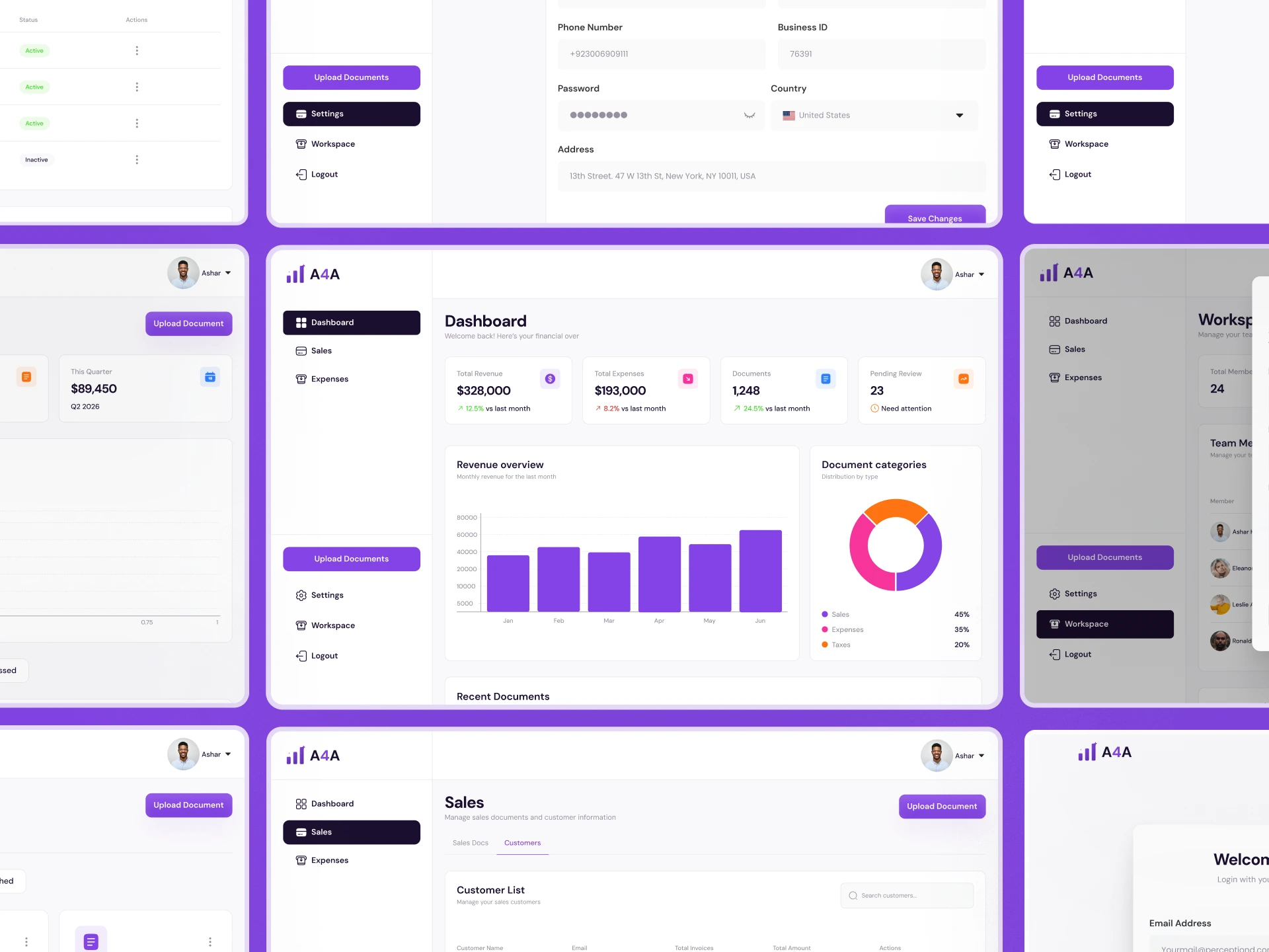 A4A is a modern web-based accounting and financial management platform built to help businesses automate document processing, track finances, and maintain compliance within one unified interface. The objective was to transform fragmented, manual accounting workflows into a clean, intelligent, and scalable SaaS experience.