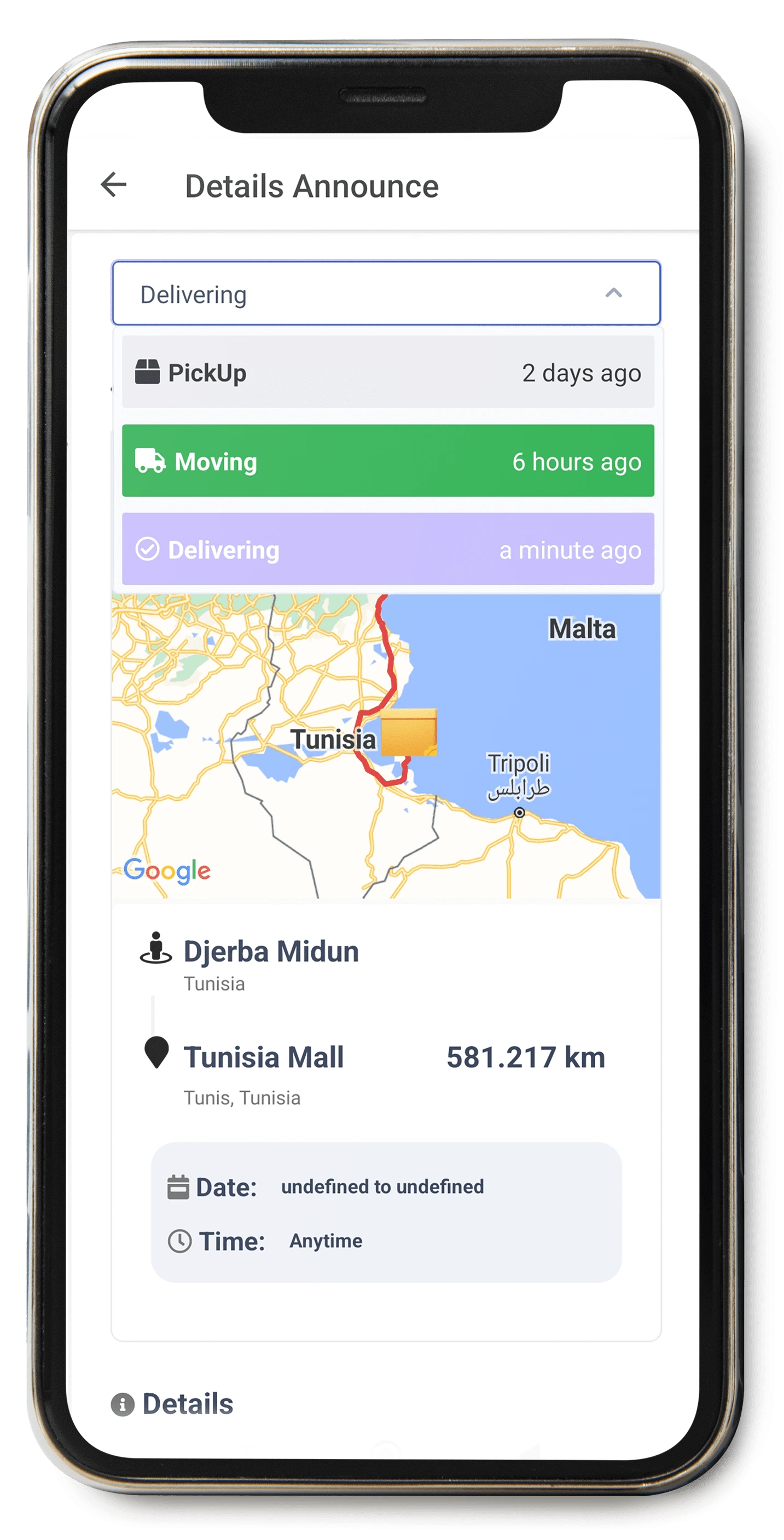L’application vise à faciliter la recherche d’annonces, la proposition de transport, la gestion des colis et la communication entre les utilisateurs.