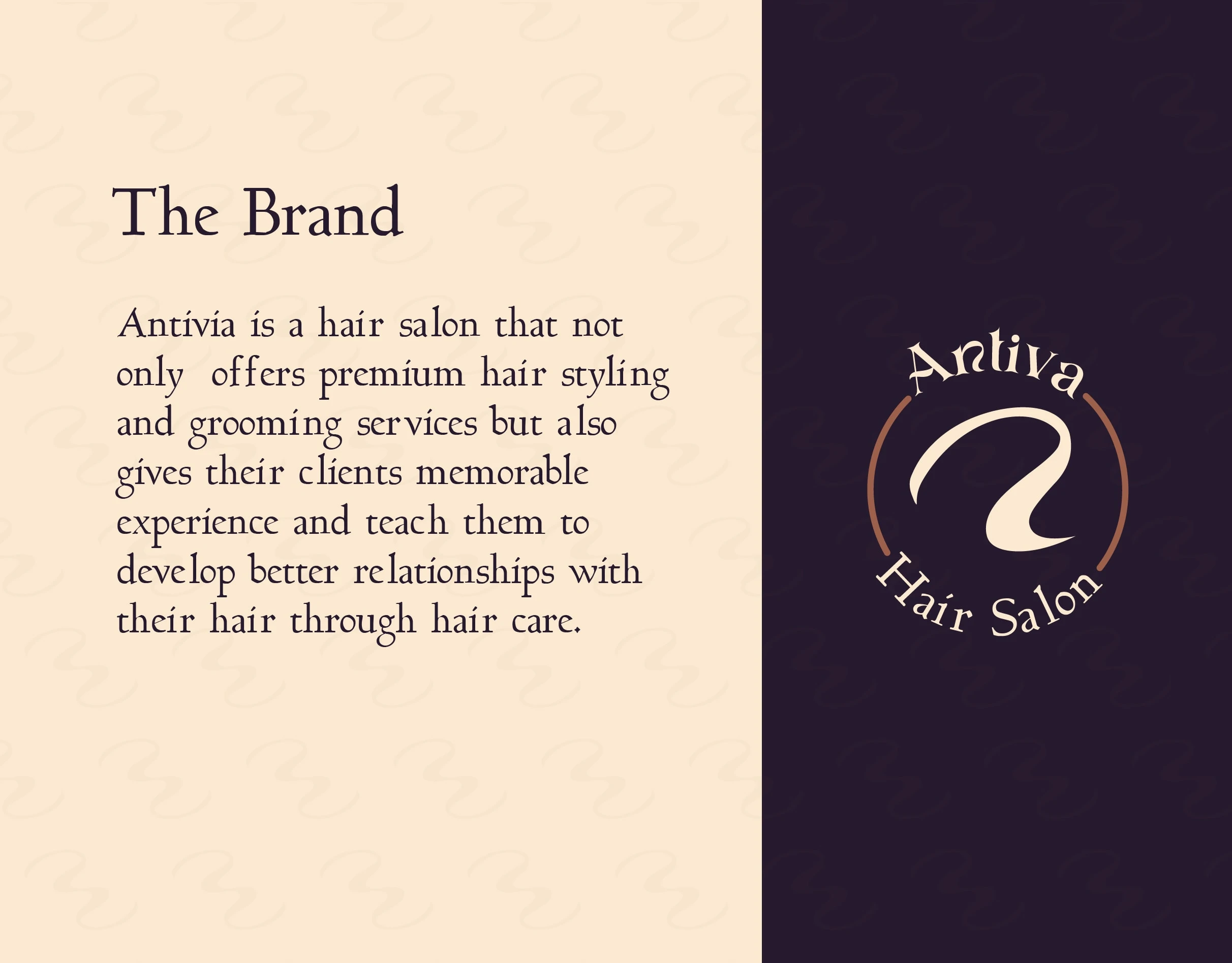 I created this visual identity for Antivia, a premium hair styling and grooming brand for women, aimed at effectively appealing to & attracting their audience.