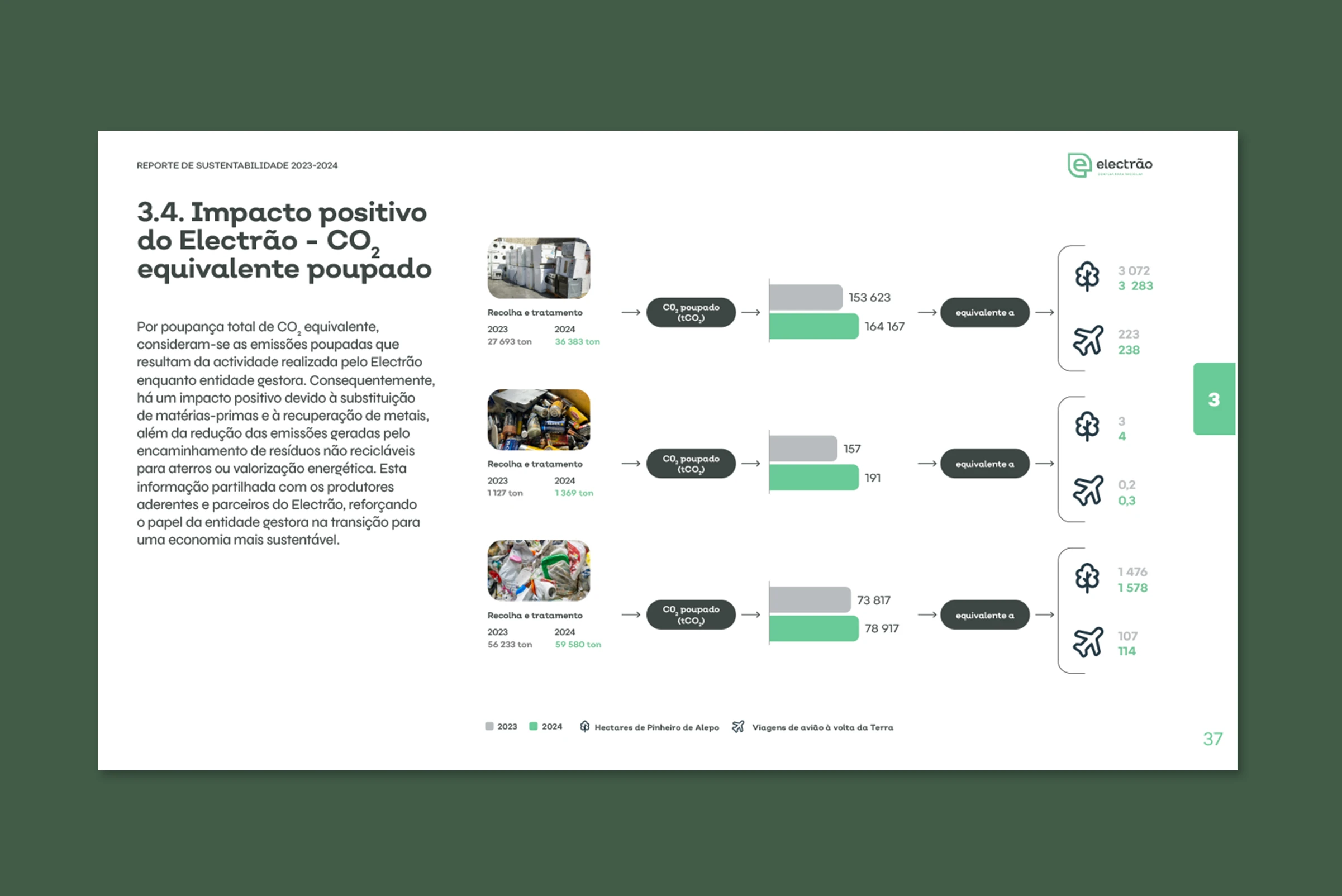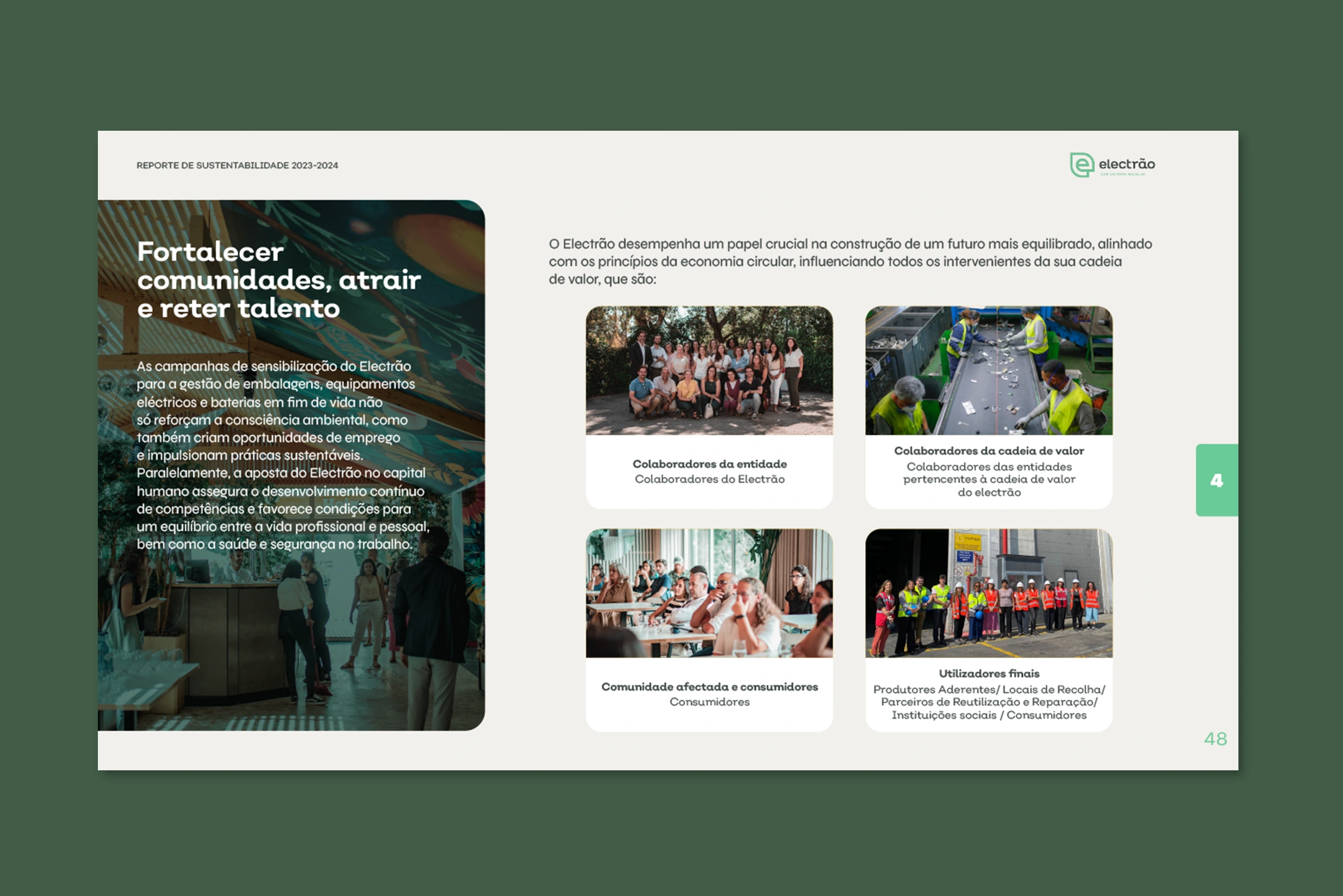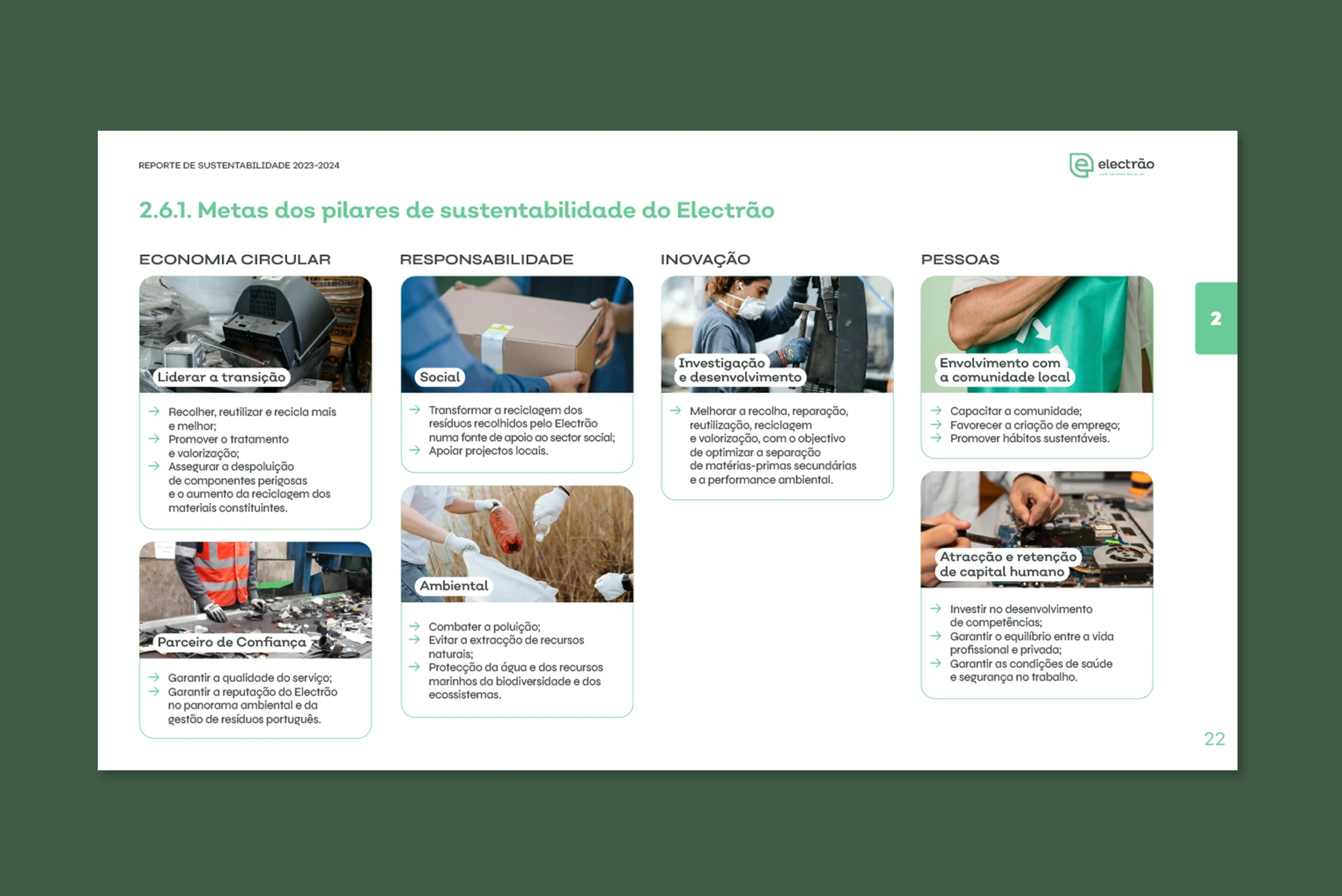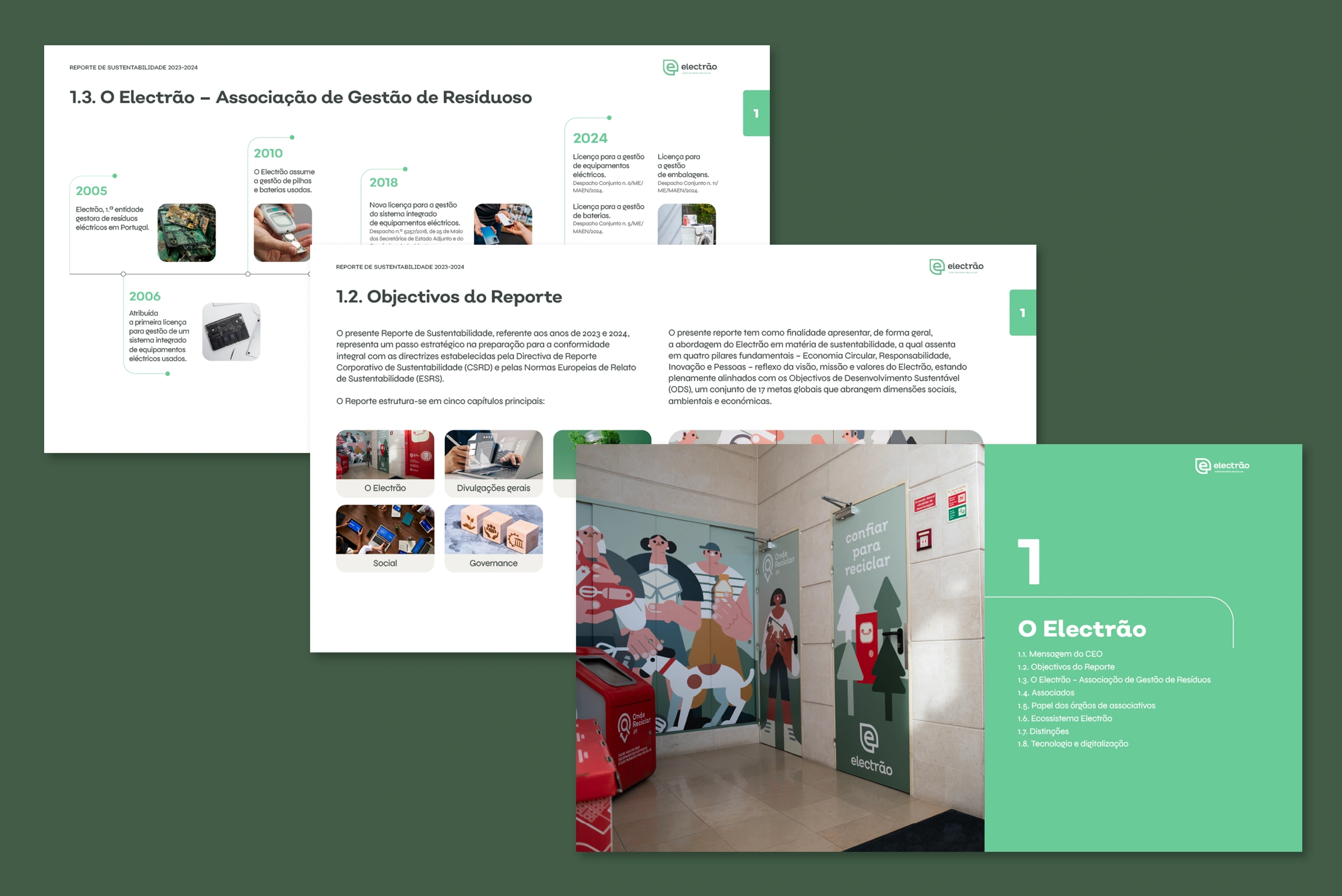 The sustainability report aims to present Electrão’s approach, based on four pillars — Circular Economy, Responsibility, Innovation, and People — aligned with the SDGs and CSRD/ESRS guidelines.