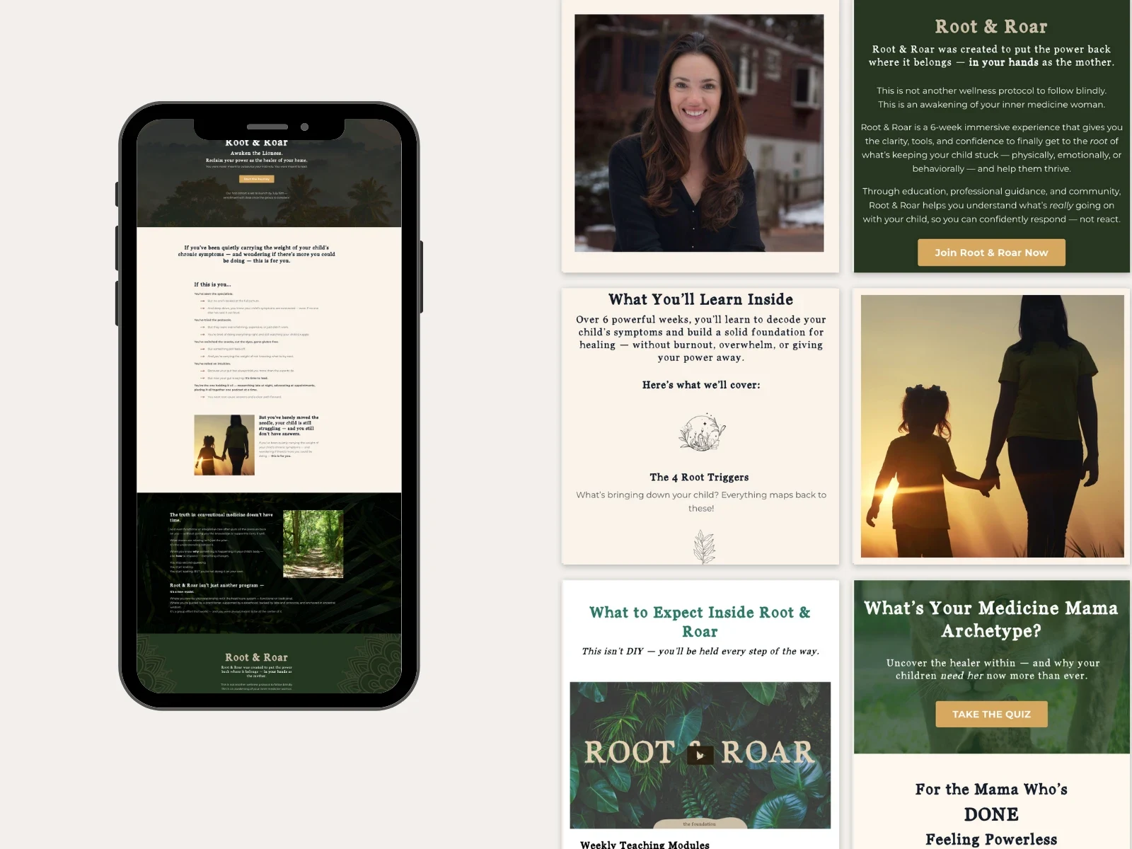 Designed and built educational funnel and cohort-based course on Kajabi for Root & Roar.