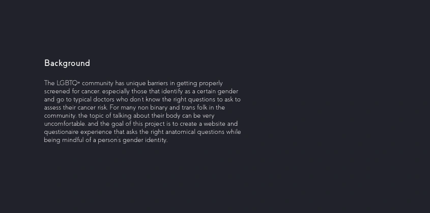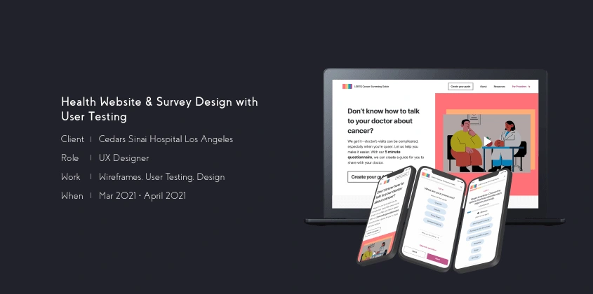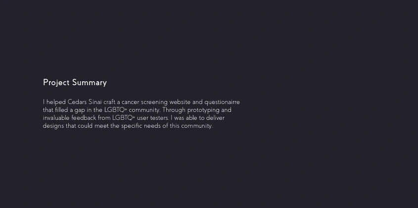 I helped Cedars Sinai craft a cancer screening website and questionairre that filled a gap in the LGBTQ+ community.