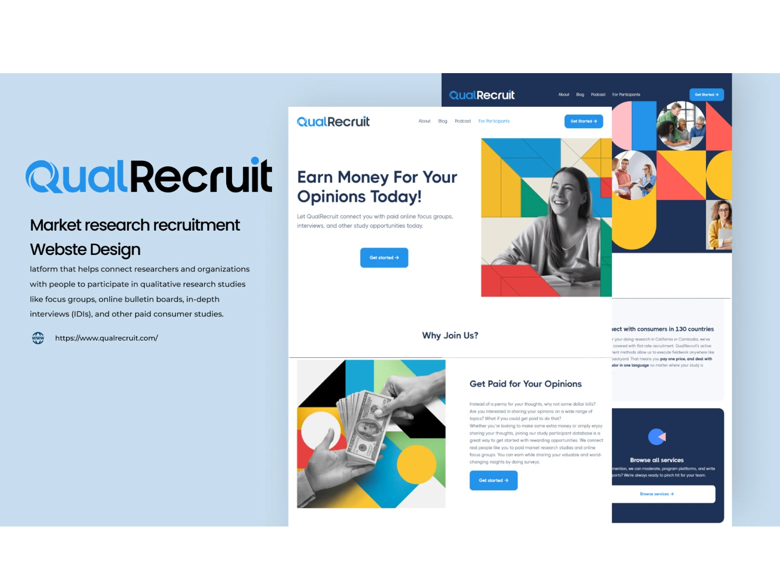 QualRecruit is a market research recruitment and project management company that connects researchers with high‑quality respondents for qualitative studies such as focus groups, bulletin boards, and in‑depth interviews across 130+ countries. They needed a professional website that clearly communicates their services to research agencies and teams worldwide, strengthens credibility, and drives client inquiries.
