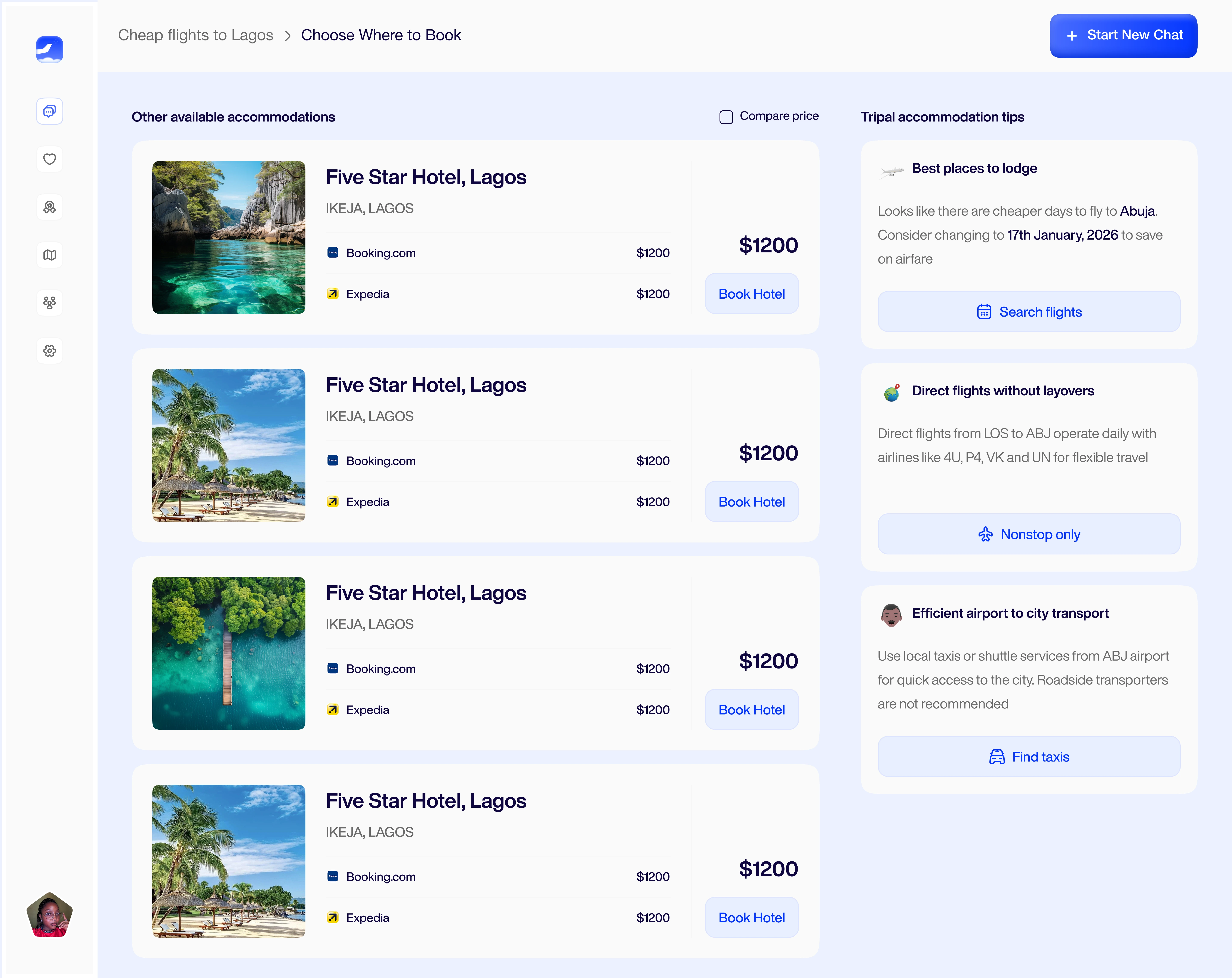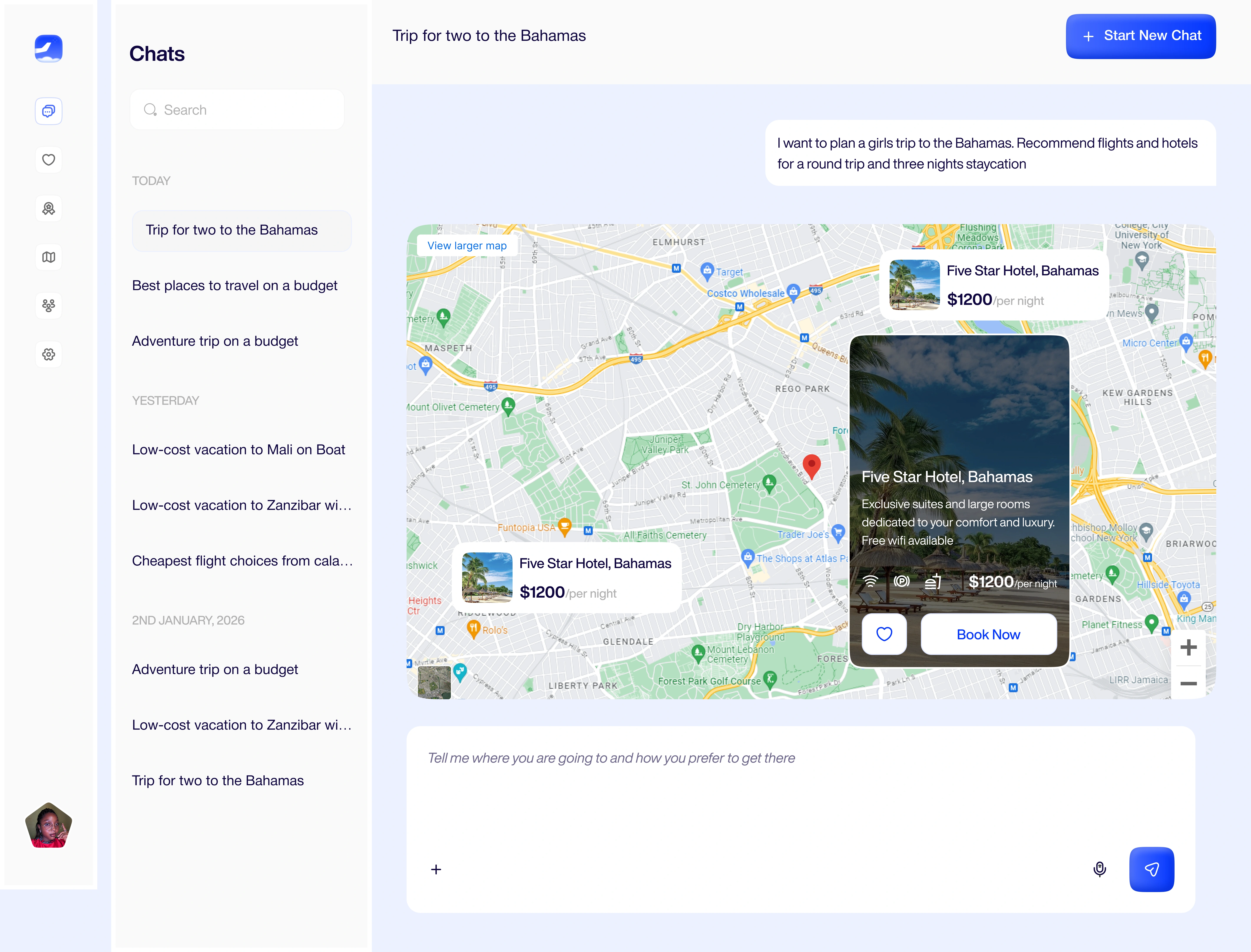 Spatial Intelligence & Wayfinding: Recognizing that location context is critical to travel decisions, I integrated interactive mapping that serves multiple functions: visualizing spatial relationships between airports and accommodations, calculating real-world distances, and providing geographical context that influences booking decisions. This transforms abstract location data into actionable spatial intelligence.