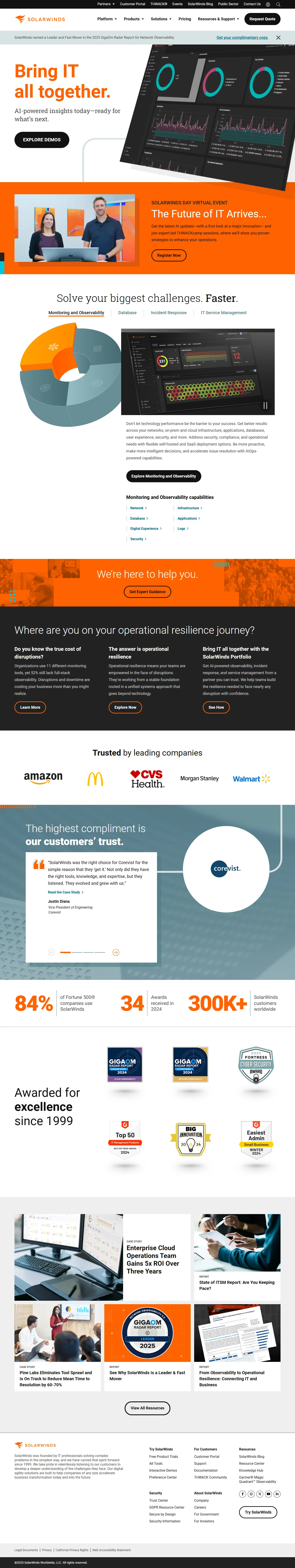 Established a coherent navigation strategy with top-level menus for Observability, ITSM, Security, etc., and deep links for demos, pricing, and documentation.