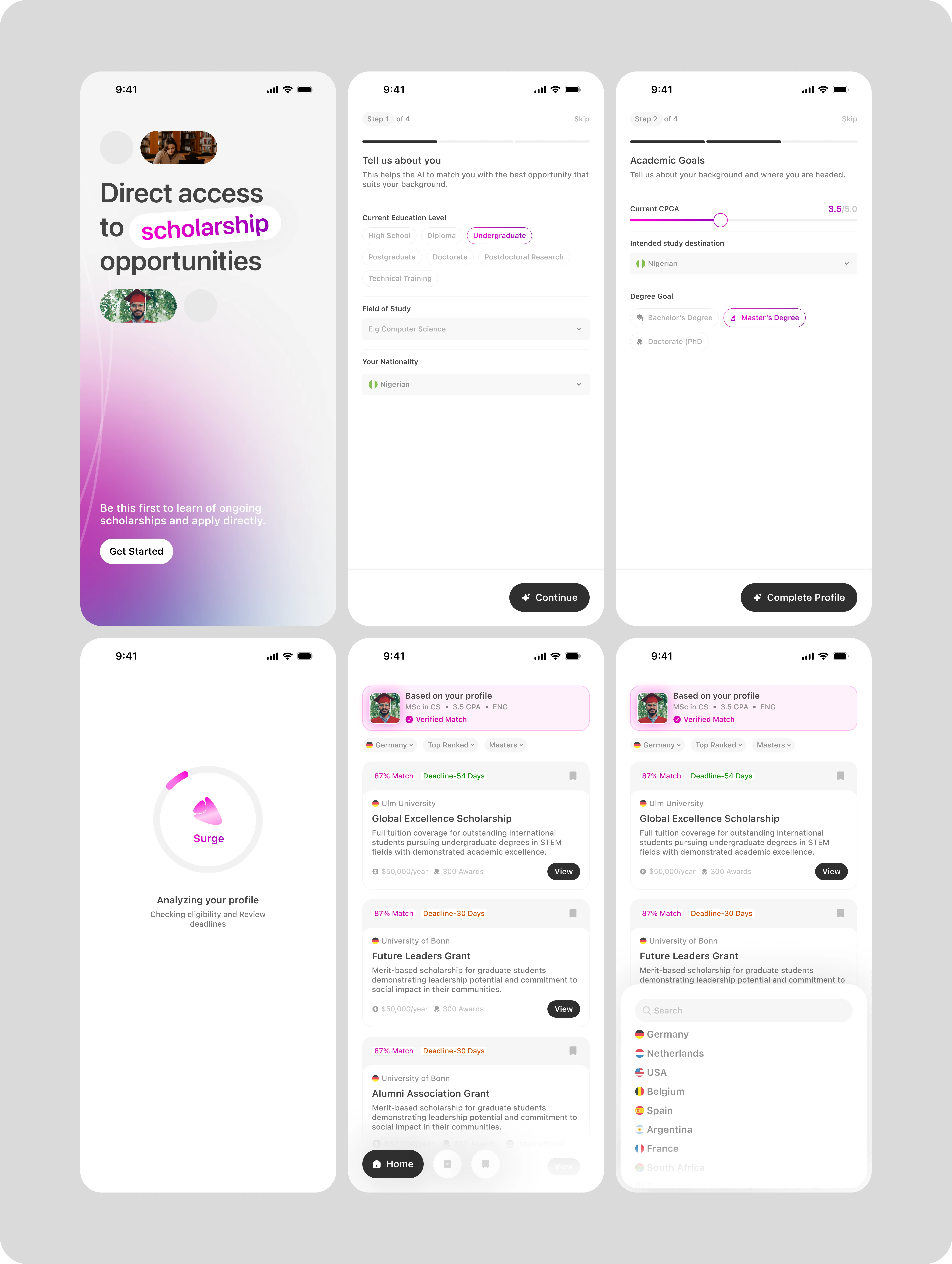 Surge: An AI-powered app designed to help users discover and apply for scholarship opportunities worldwide by matching them based on their academic background, location, and eligibility criteria. The app simplifies the scholarship search process through personalization and smart recommendations.