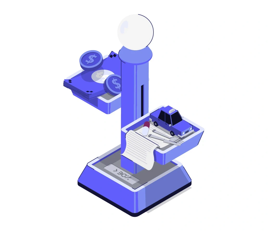A cohesive set of isometric spot illustrations created to visually communicate key concepts in personal finance, economic literacy, and digital transactions.