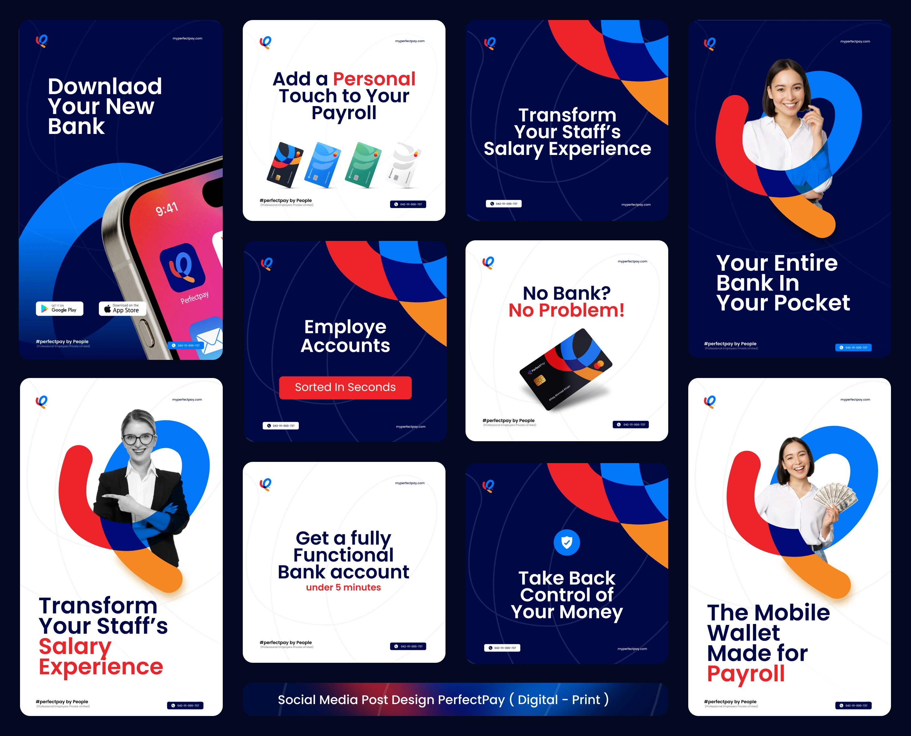Designed social media content for PerfectPay with a focus on a modern look, consistent brand identity, and audience-friendly visuals.
