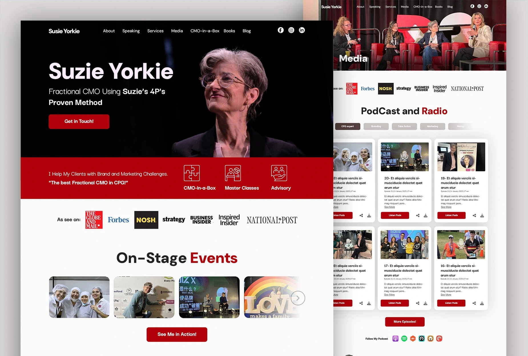 When I started working on Susie Yorkie’s website, the goal was clear: transform her digital presence into a powerful tool that reflects her authority in food marketing and female mentorship, while making it easy for visitors to connect and convert.
