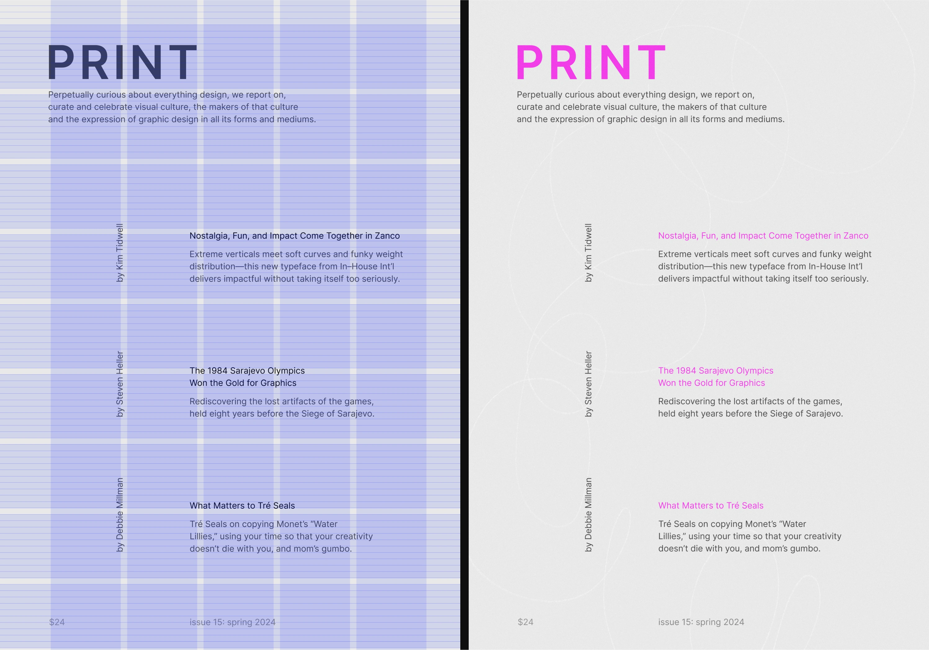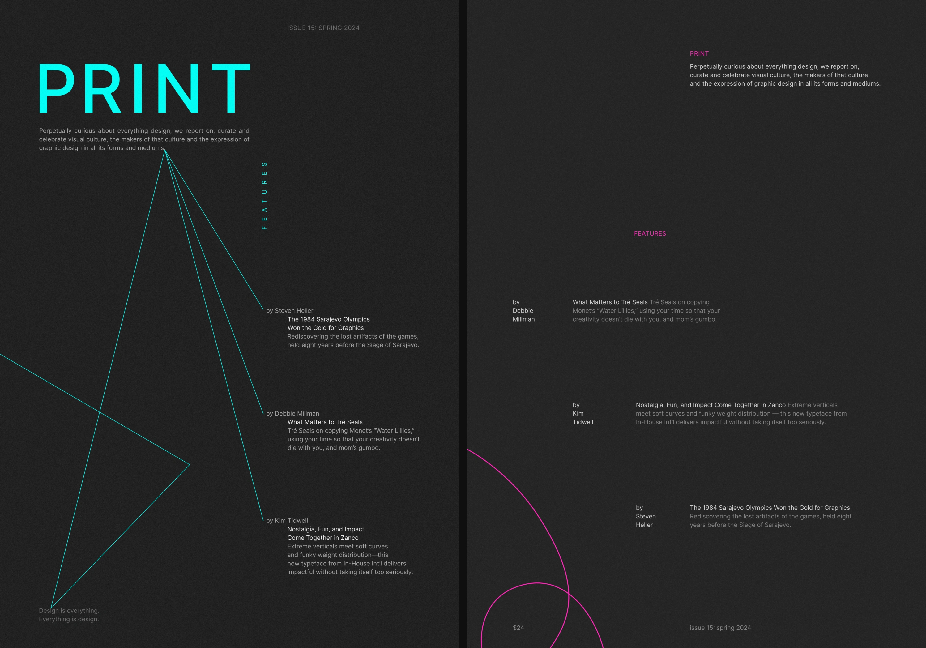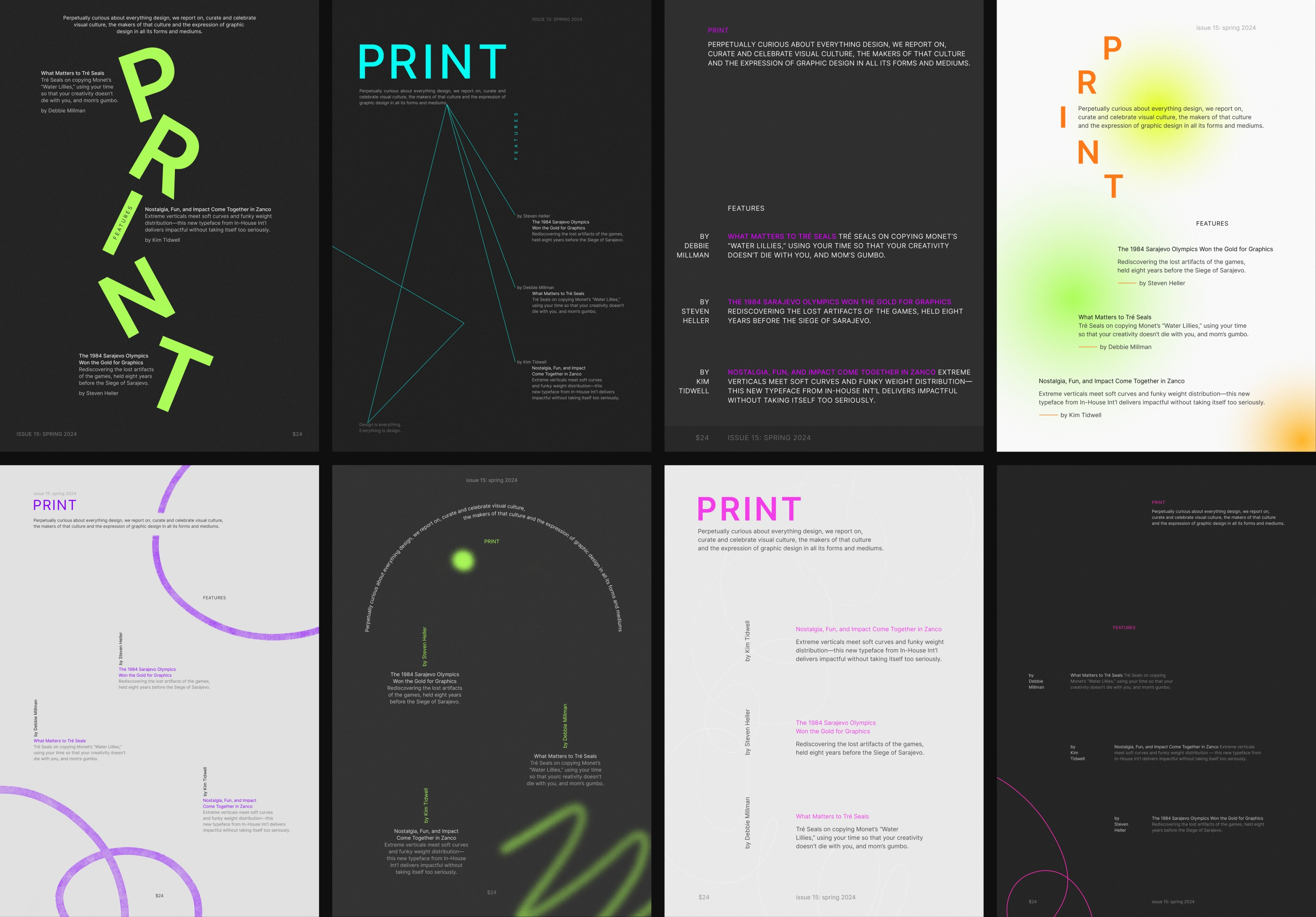 In this project, I embraced the challenge of creating magazine covers using the exact text and typeface. A unique aspect of this project was the "One Weight, One Point Size" concept for some covers, pushing the boundaries of creative expression within strict limitations. The main task was to maintain readability and hierarchy, adhere to compositional rules, and effectively apply typographic principles despite the constraints.