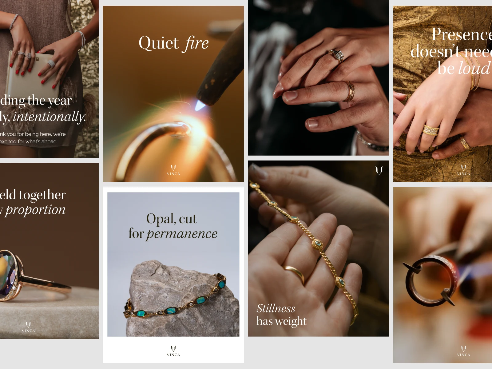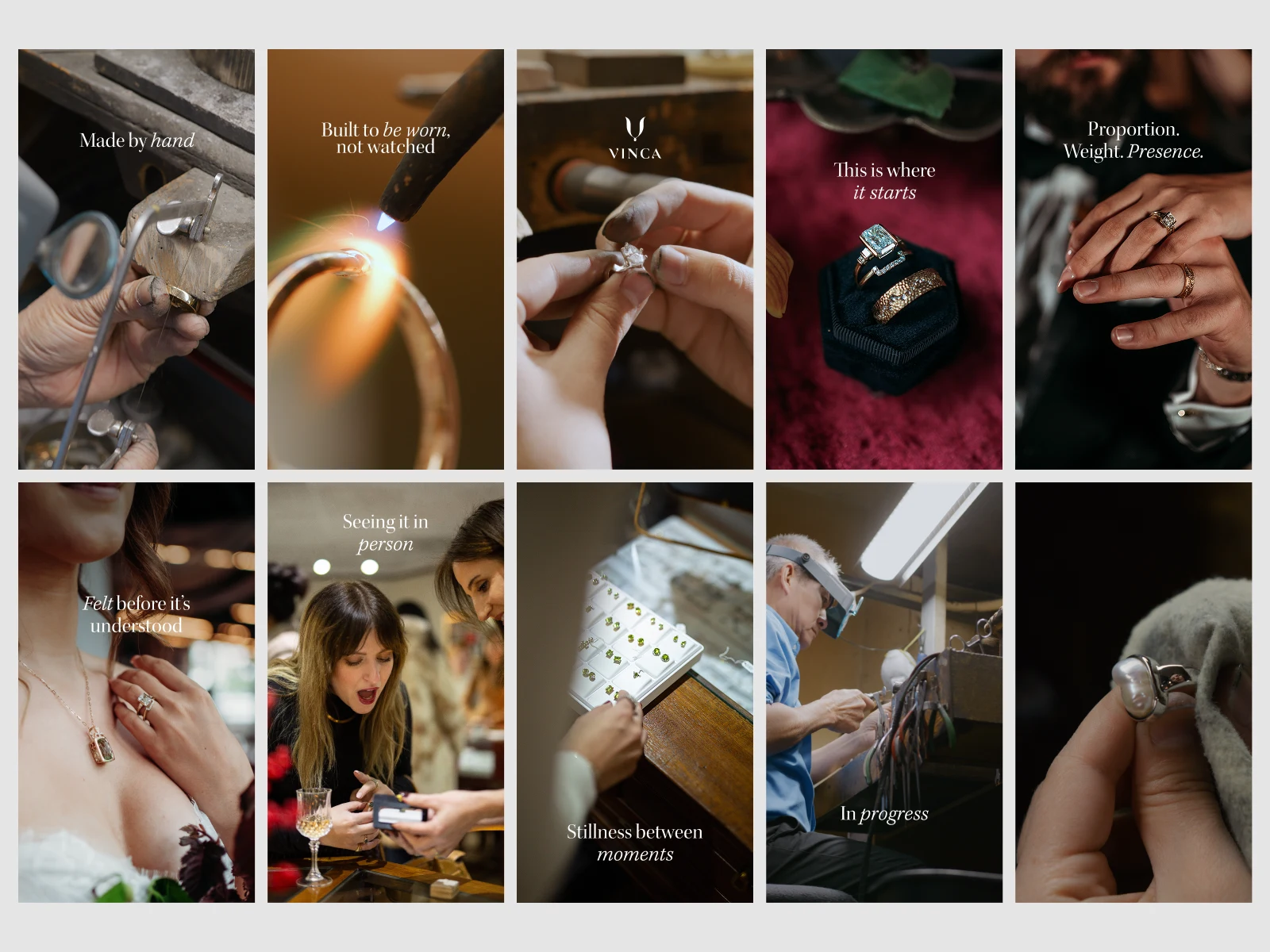 Instead of “marketing jewelry,” we positioned Vinca as a working studio.
