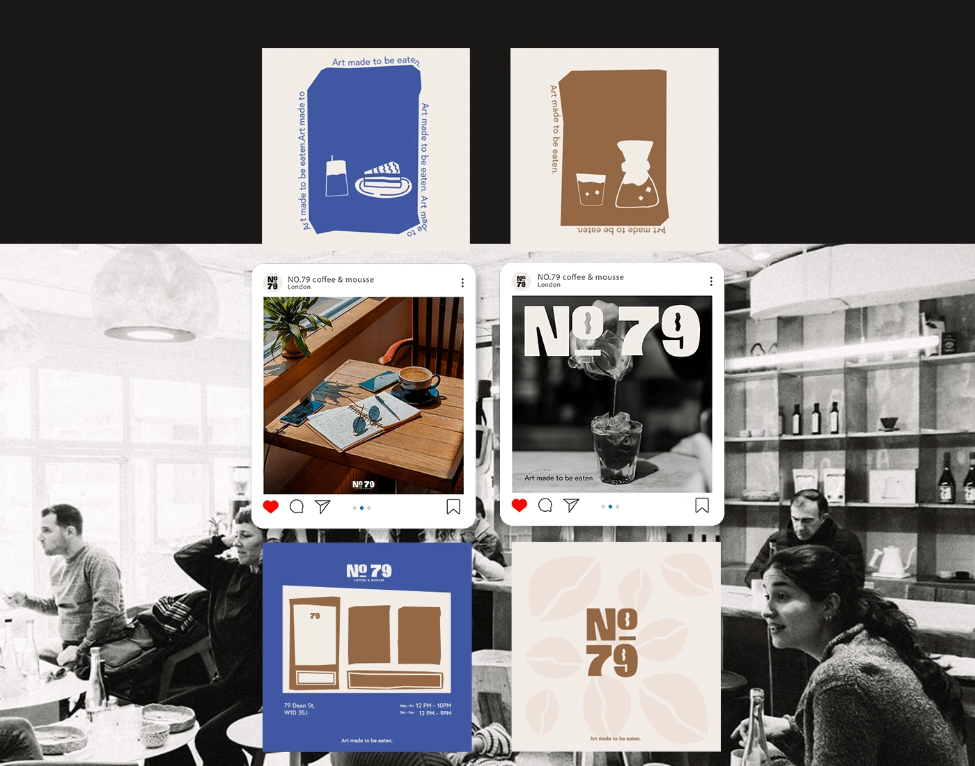 Branding for No 97 coffee and mousse, a London based artist cafe that prides its self on it comfy atmosphere and delicious works of art.