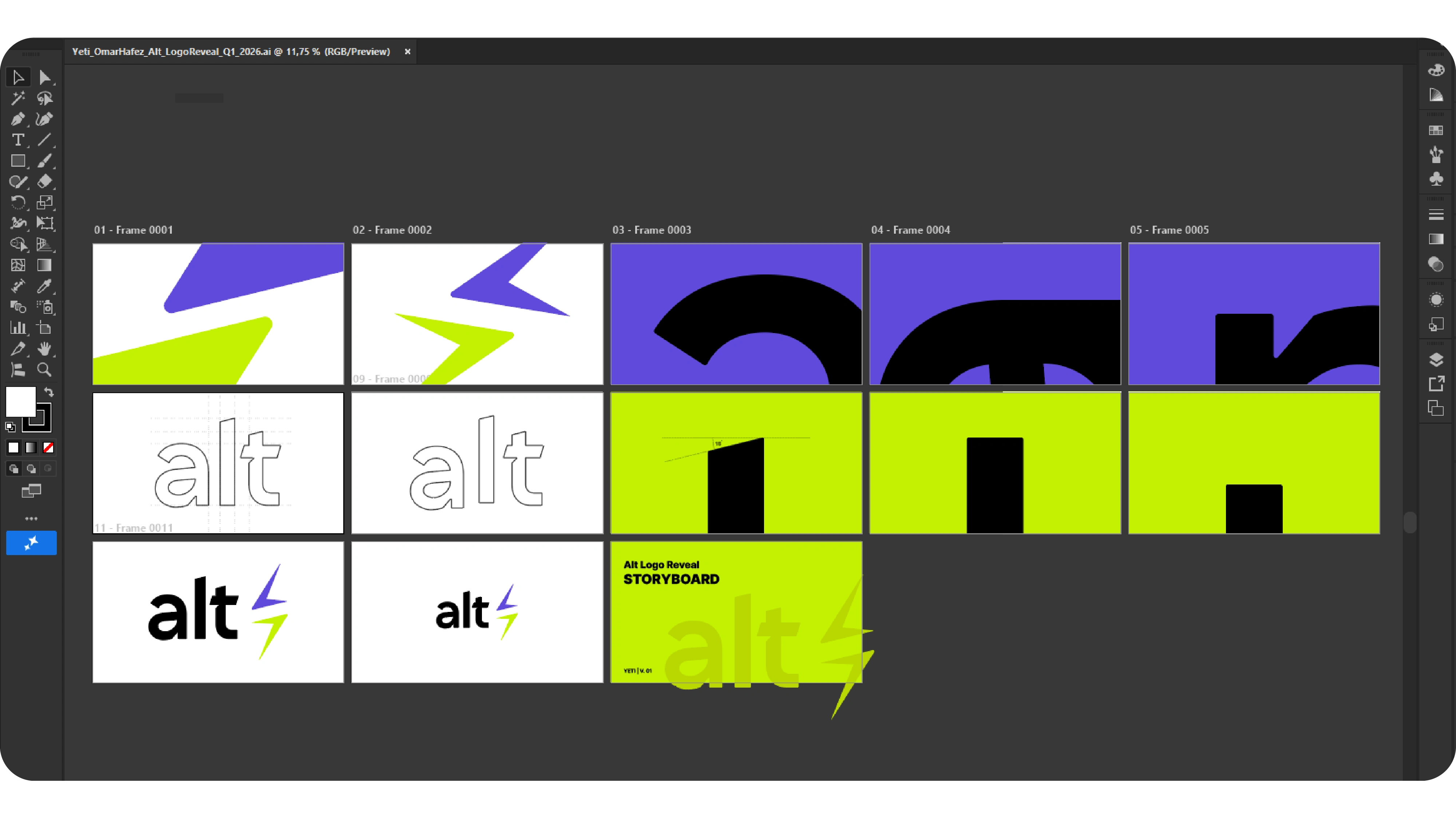 Omar doesn't show up often — but when he does, he brings something worth doing. This time it was a logo reveal for Alt, an electricity company he was about to pitch to potential investors. The animation had to make an impression in under 3 seconds, built from a single reference image, with a presentation in two days. One round of feedback, one small adjustment, and his final word was "Beautiful."