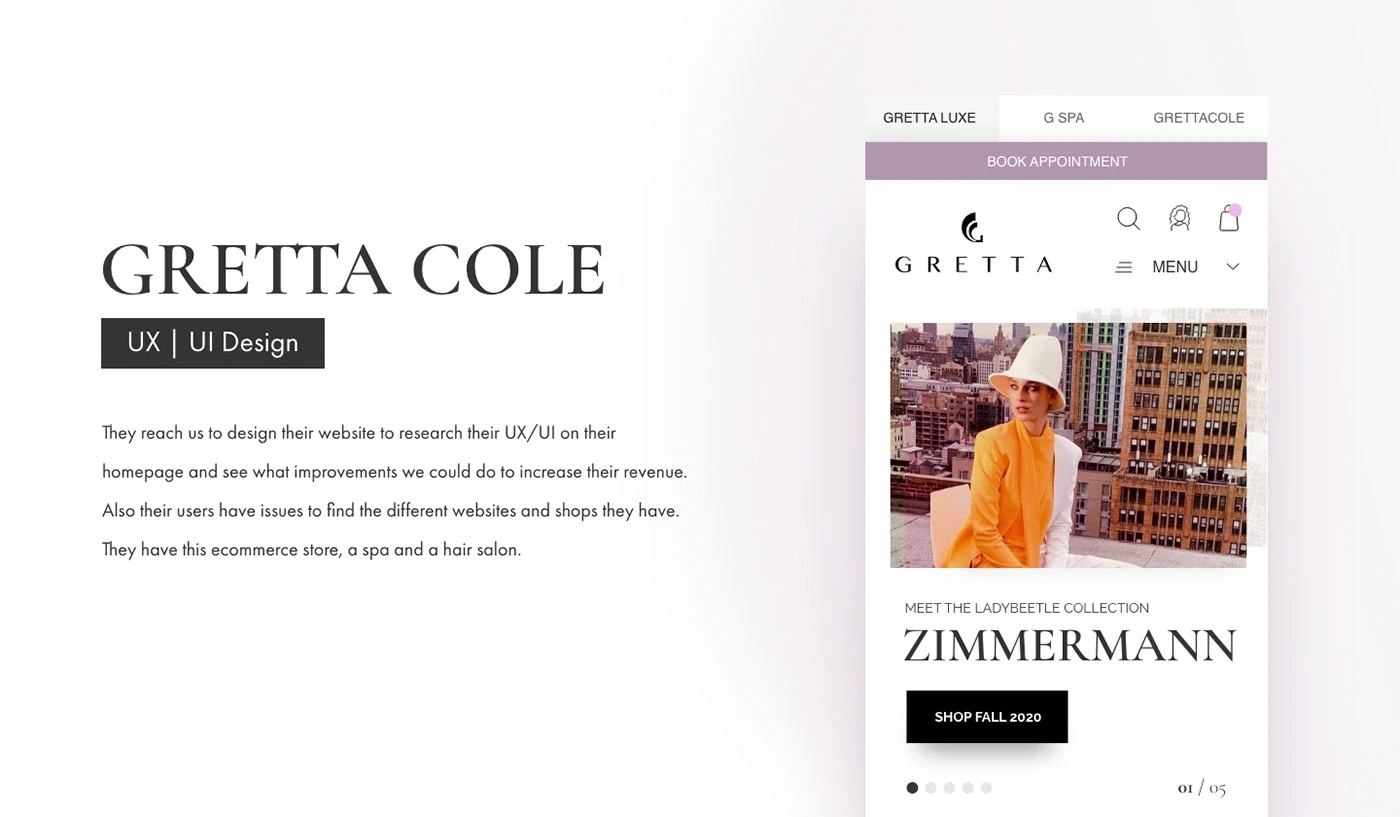 Gretta Cole is an ecommerce fashion store. The project consists of desktop and mobile, it also includes icon design and arquitect information.
