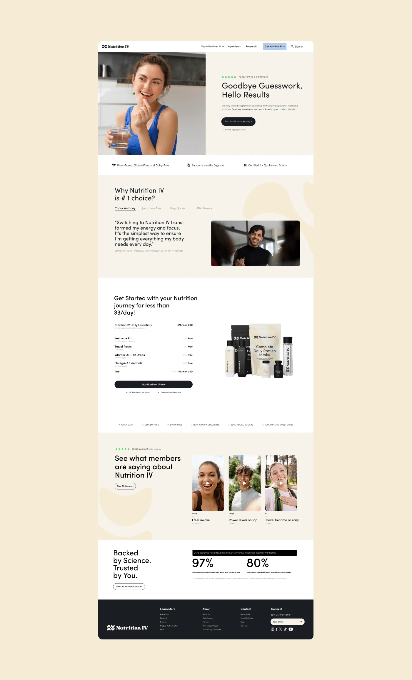 Led a complete brand overhaul and custom Shopify development for Nutrition IV, delivering a high-performance identity from logo design to a seamless UI/UX.