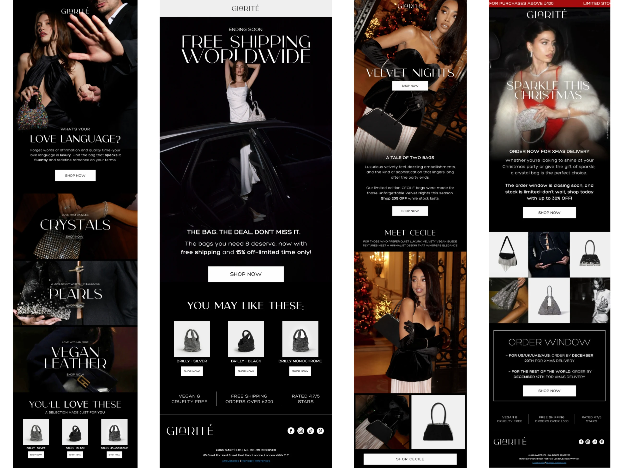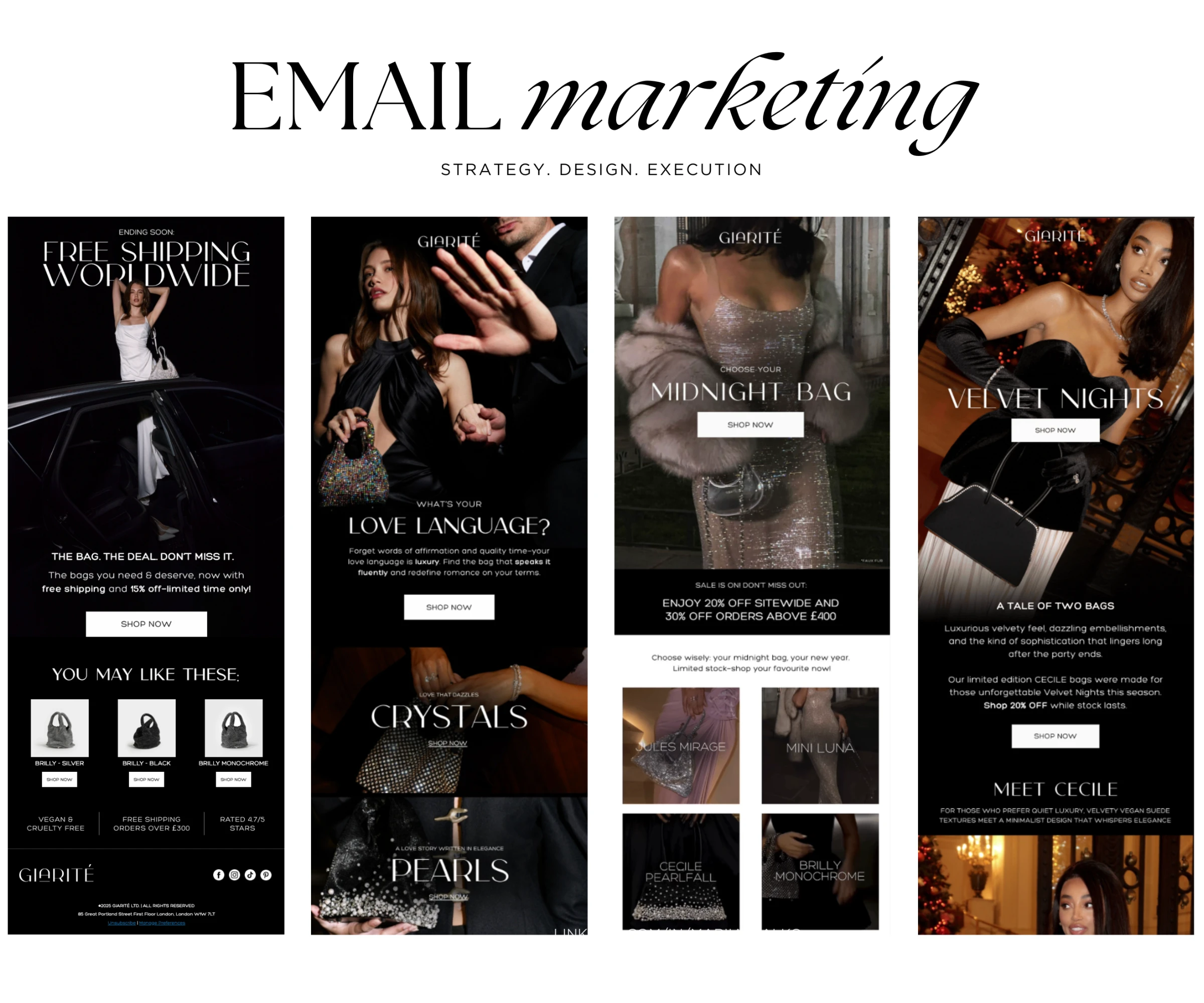 In my marketing role at Giarité, I developed a Klaviyo-based email marketing strategy that enhanced customer engagement and increased sales. My role involved strategizing email marketing, designing targeted email flows and campaigns, optimizing engagement, and boosting brand awareness.