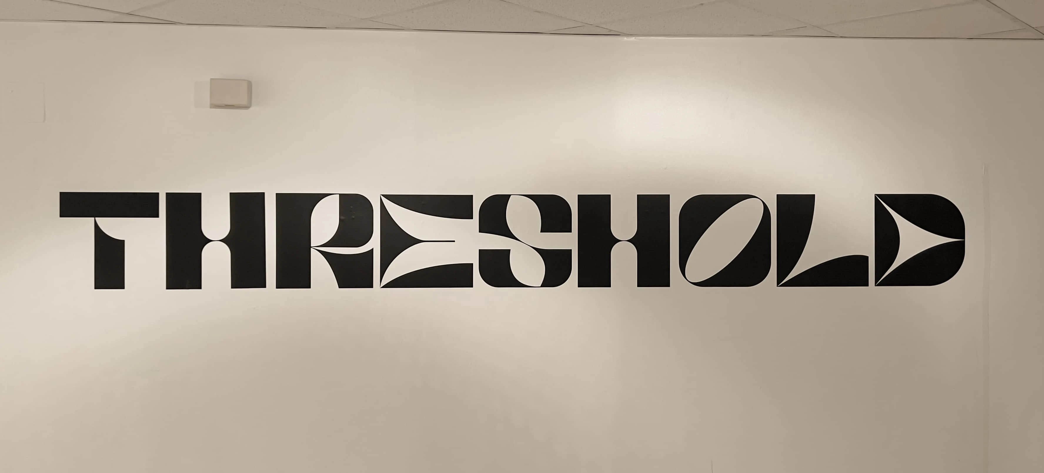 The word "threshold" refers to the point just before a transition. Threshold/Santiago Calatrava: Structure and Expression focuses on themes of transformation and movement in nine architectural projects. The exhibition title was created to be a sans-serif typeface with the high contrast qualities of a modern serif typeface. At the same time, the 1:1 height/width ratio of the letterforms reflects the structure and character of the architectural forms.