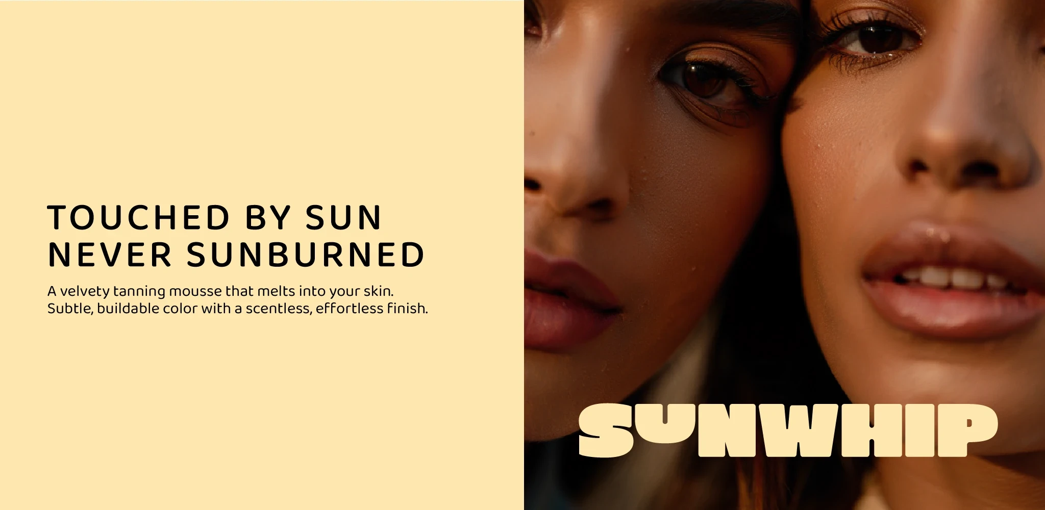 Sunwhip tanning foam is made to give the sun kissed glow, without any sun damage. Bonus points - looks great on the skincare shelf too.