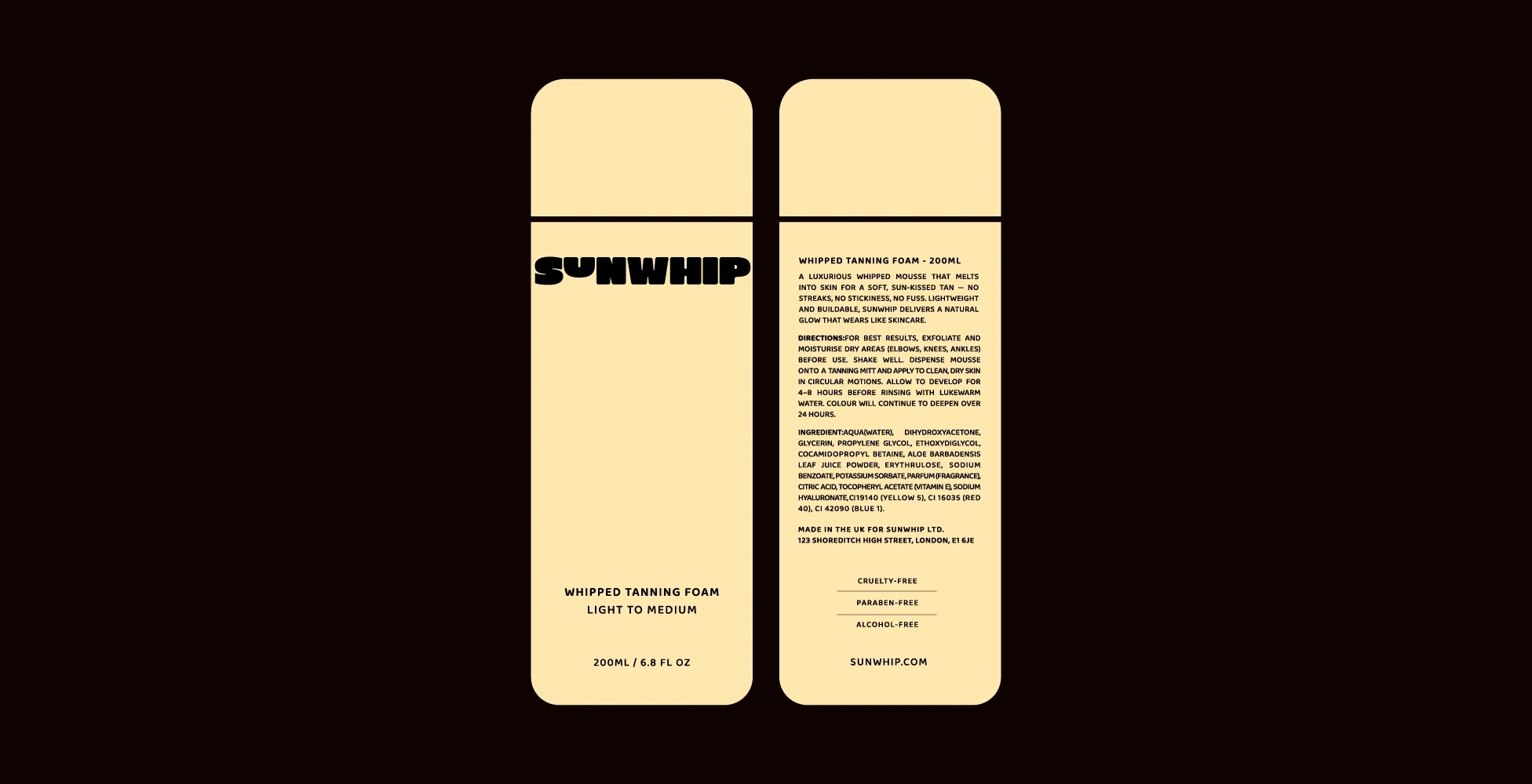 Sunwhip was born with the goal to stand out in the outdated market of tanning products. With focus on design savvy and aesthetics loving customer, I created the brand identity to look good on the bathroom shelf.