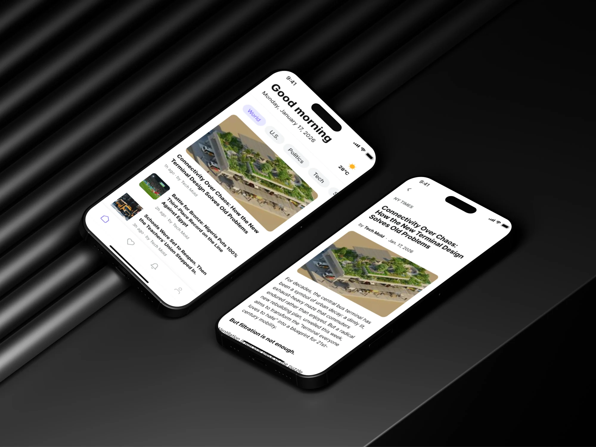 Create a minimal and elegant news reading experience