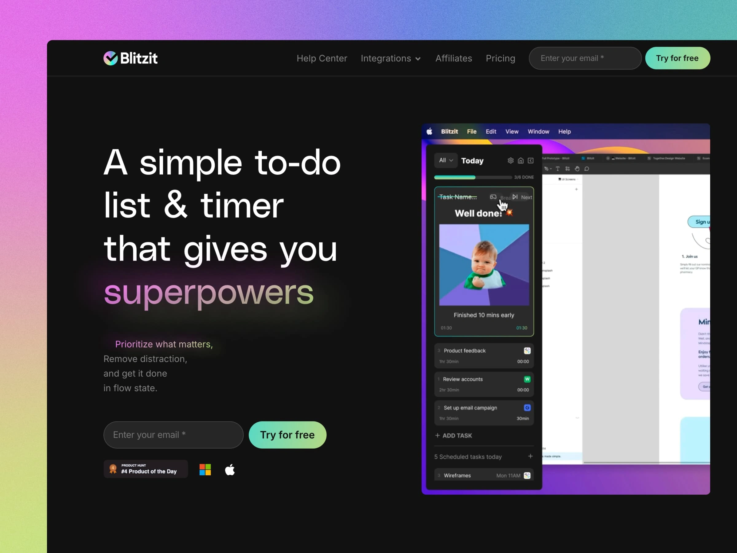 Blitzit is a personal productivity app designed to help you focus and get things done. I developed a custom landing page, plugins, and automations to enhance user experience, streamline workflows, and boost conversions.