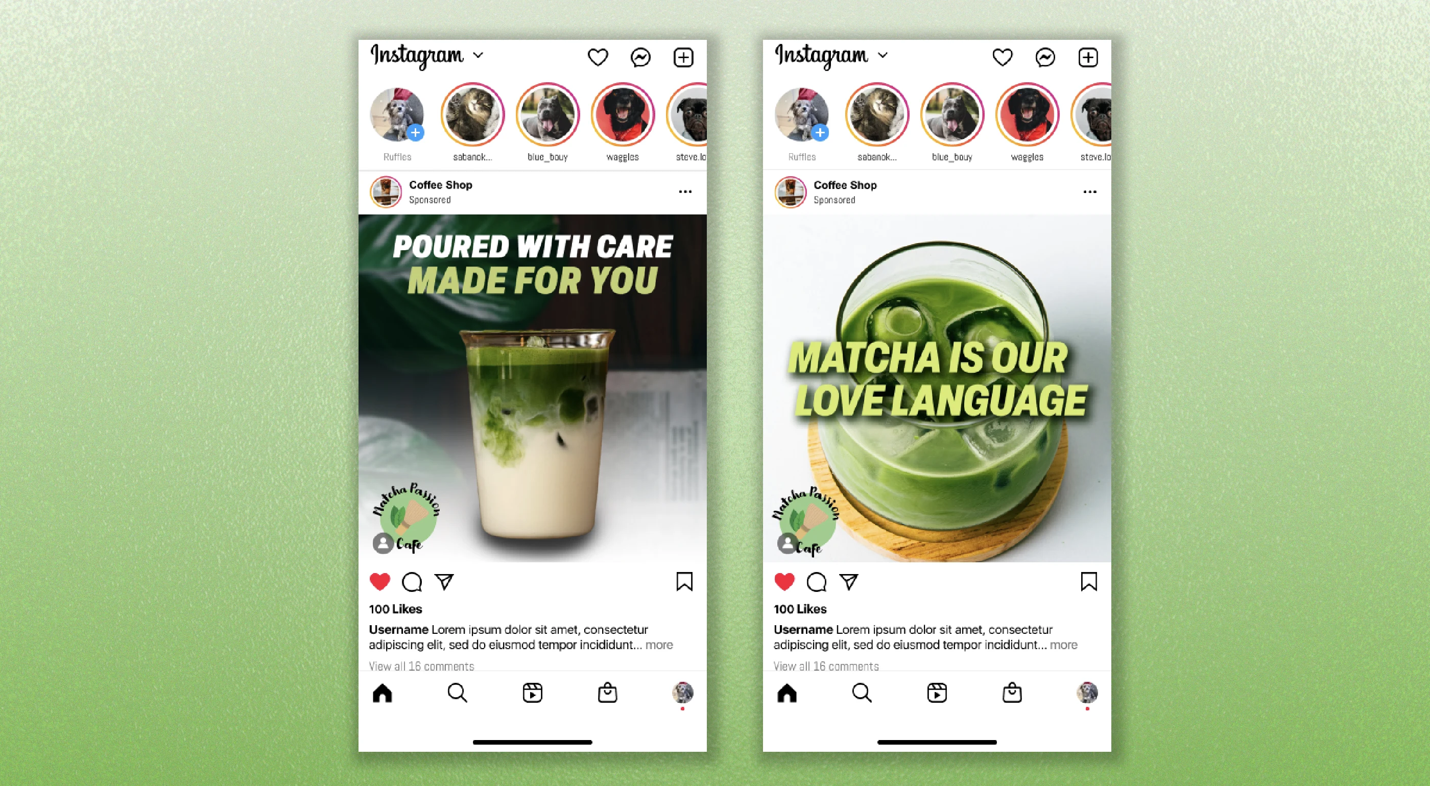 This fictional branding project for a modern matcha café features a custom logo, health-focused infographic, business card, promotional poster, and two Instagram posts. All designed to align with the brand’s visual identity. The project emphasizes calm, organic visuals and a clean green palette to reflect the café’s fresh, natural vibe. It showcases my ability to create cohesive brand assets across both print and digital platforms, maintaining consistency in tone and style.