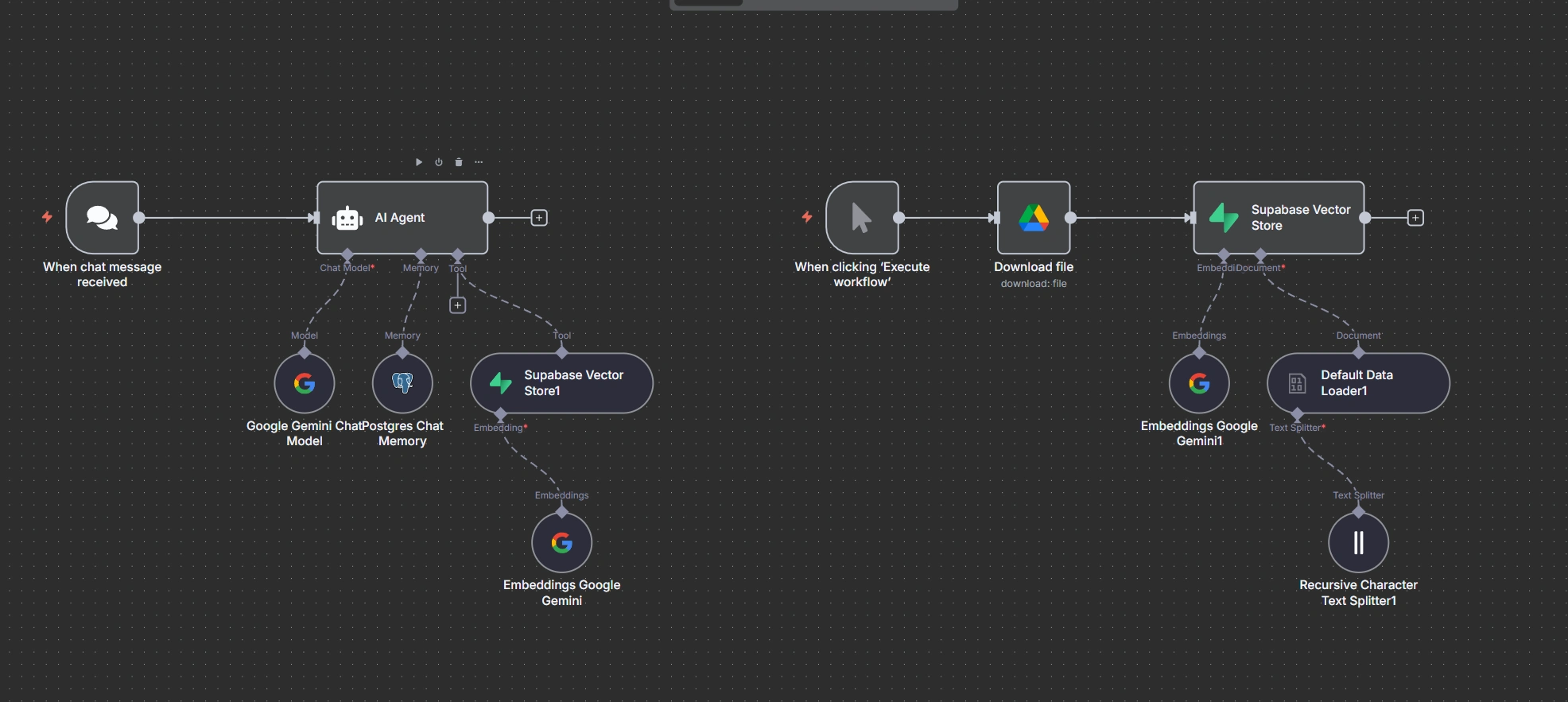 Developed a sophisticated RAG (Retrieval-Augmented Generation) system using n8n automation that creates an intelligent knowledge base from private company documents.
