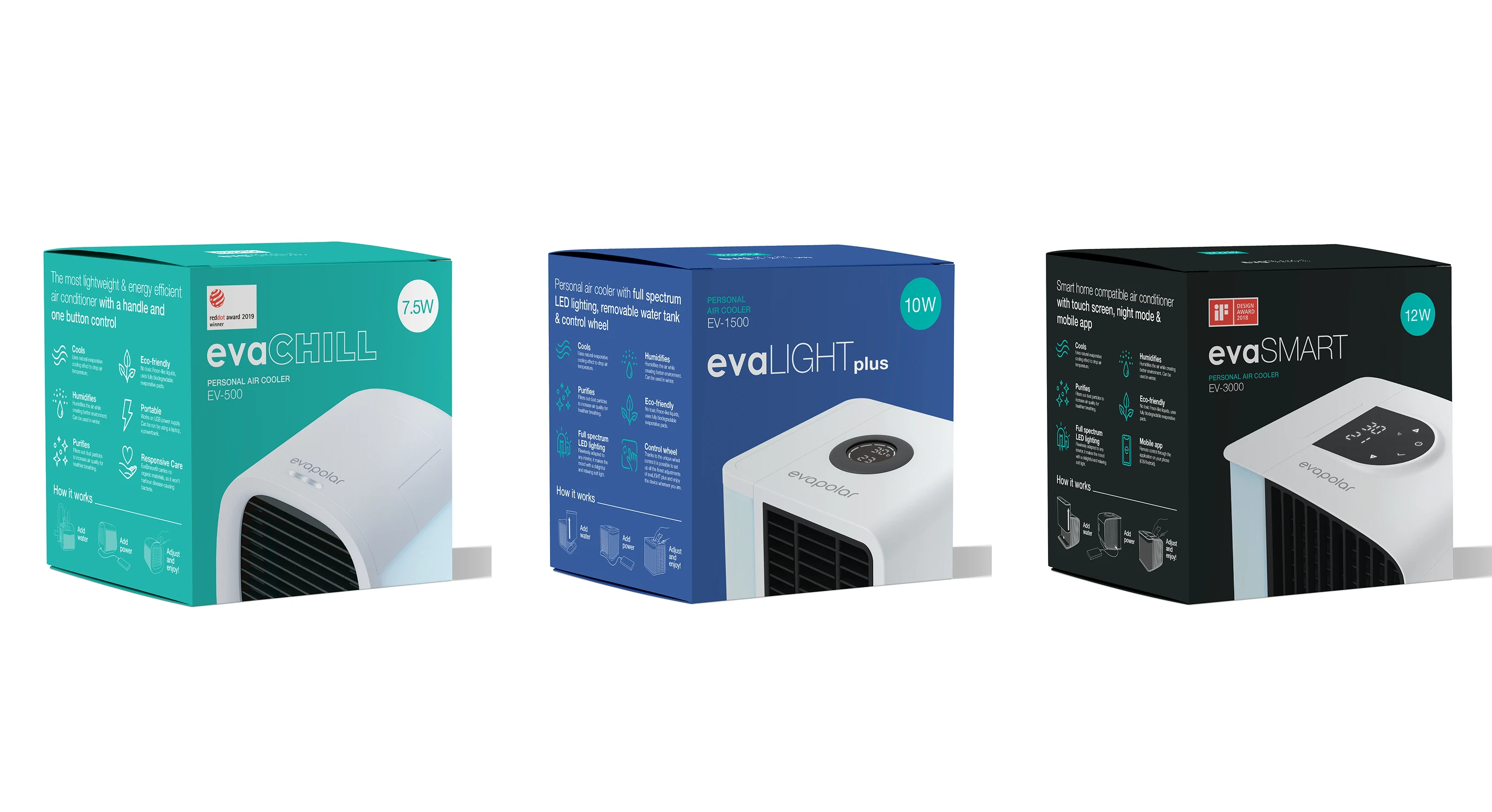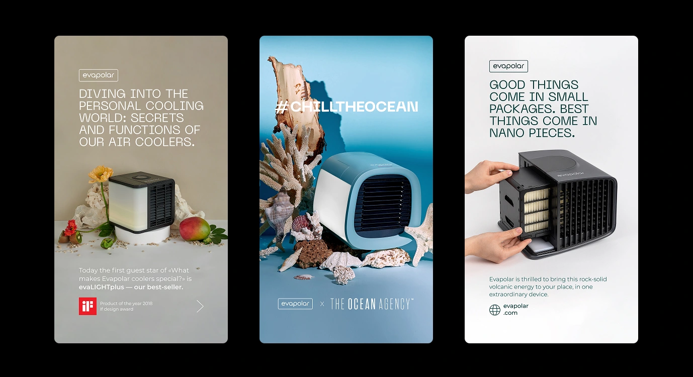 At Evapolar, I handled all visual design tasks aside from industrial design, collaborating closely with that team. I gained hands-on experience in product photography, print production, web and graphic design. I helped launch new products, designed a full crowdfunding campaign, ran product photoshoots, updated the mobile app UI, created product listings for web and retail, and managed social media visuals – ensuring consistent, high-quality brand presence across all channels.