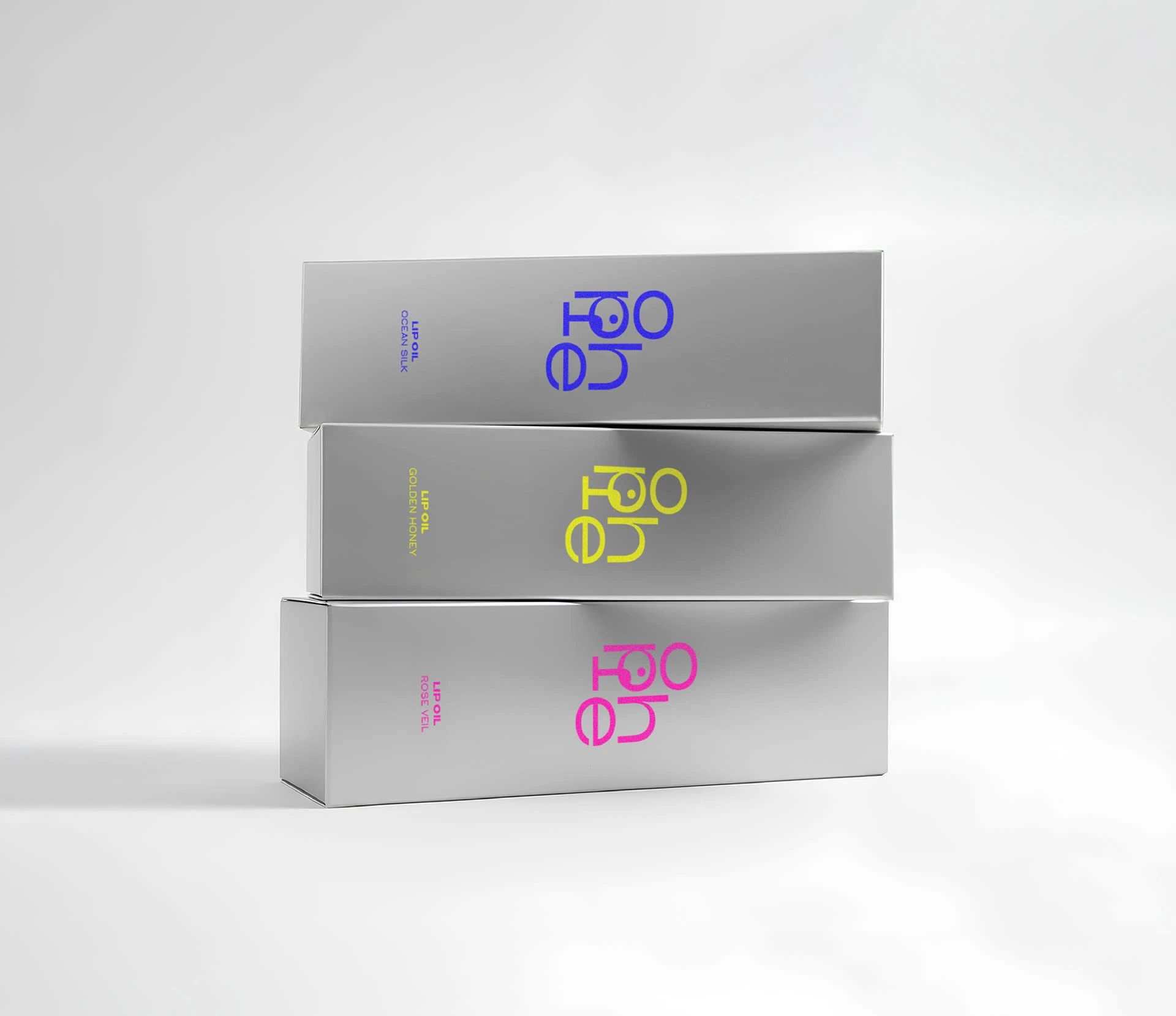 Lip oils formulated with micro-encapsulated hydration technology. The design blends minimal elegance and futuristic precision, reflecting its advanced science.