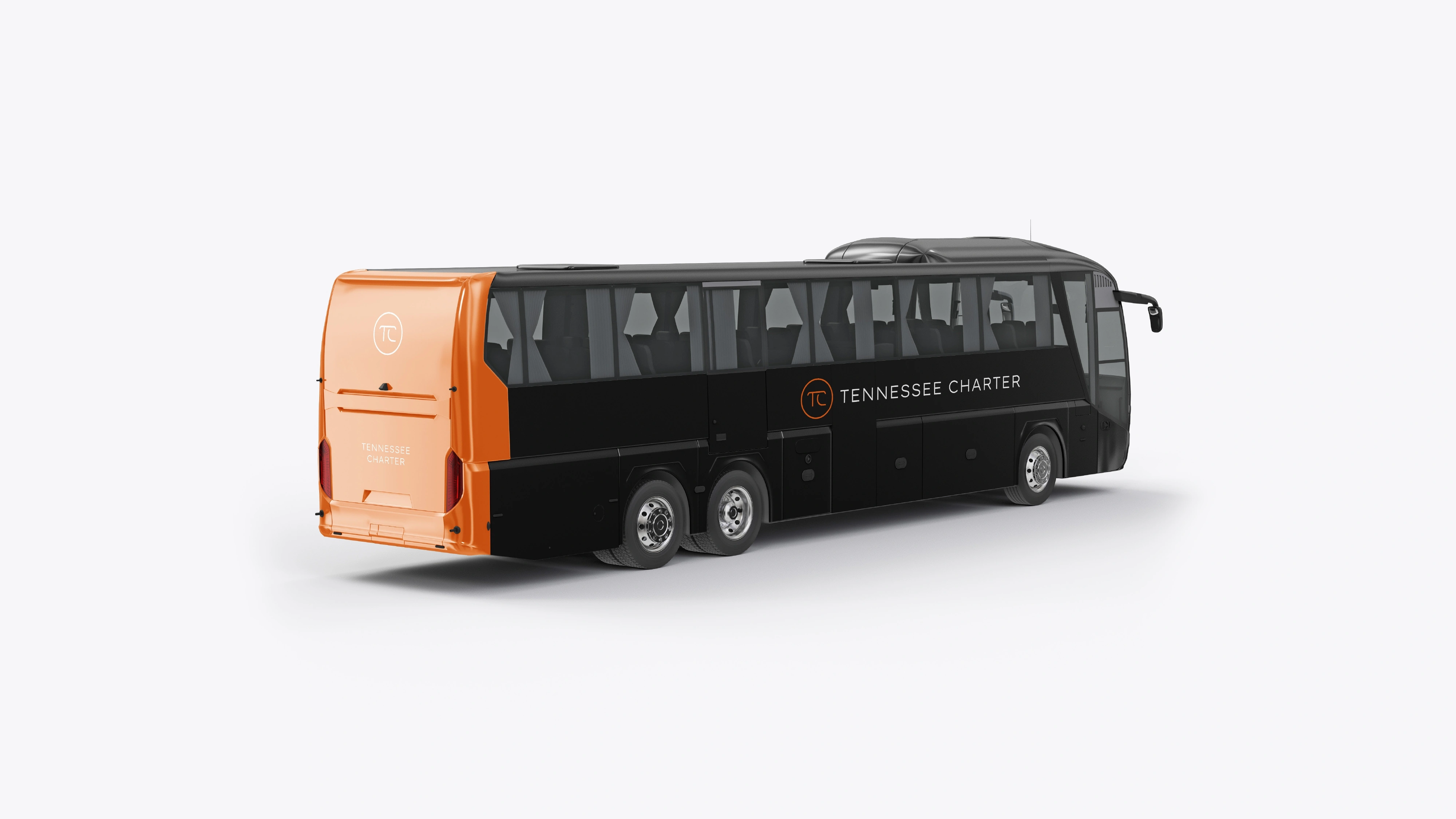 Designed Tennessee Charter’s brand identity with a refined TC monogram and clean system, conveying reliability, comfort, and premium group transportation.