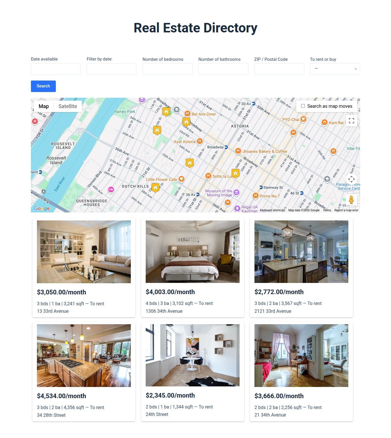 This directory was developed for a real estate business that needed a structured and easy-to-navigate platform to showcase property listings on their website. The client wanted to organize properties by location, type and pricing, while providing users with a smooth browsing experience to find relevant listings quickly. The goal was to improve property visibility, simplify listing management and enhance user engagement.