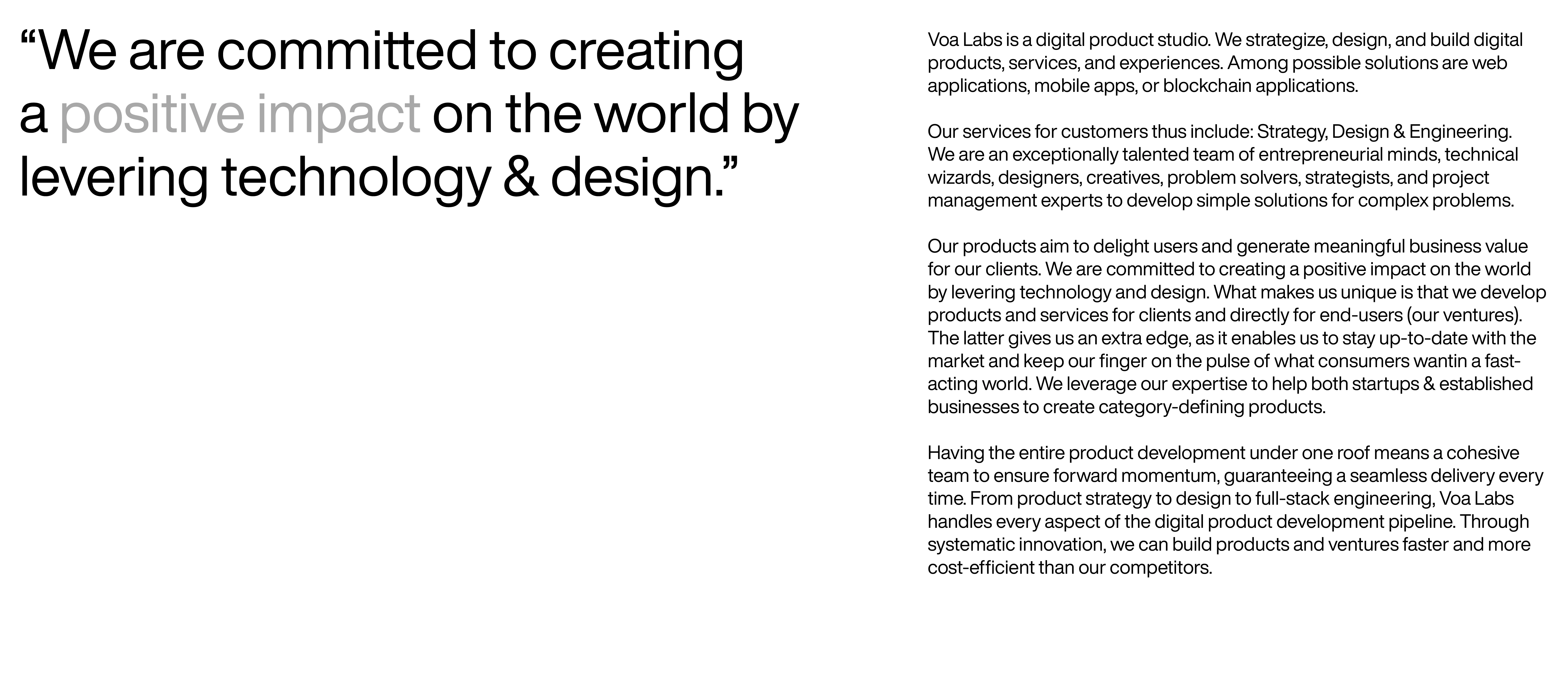 Voa Labs is a digital product studio that strategizes, designs, and builds web, mobile, and blockchain applications to create seamless digital experiences.