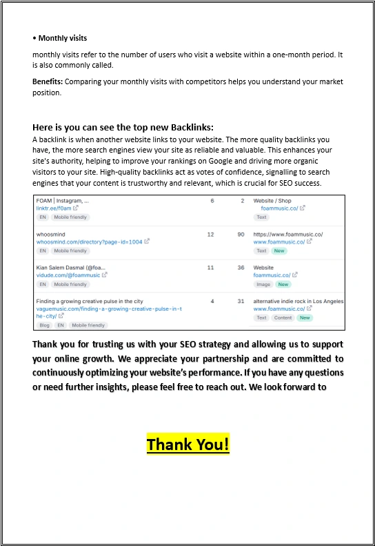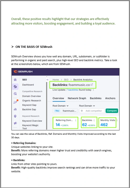 In just 28–30 days, foammusic.co achieved measurable SEO progress across search visibility, traffic growth, backlink authority, and audience expansion. The results demonstrate that a focused SEO strategy can quickly generate momentum and create a strong foundation for sustainable long-term growth.