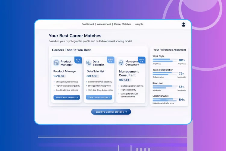 The platform could collect questionnaire responses about personality and behavioral traits but lacked the intelligence layer needed to convert this data into meaningful career recommendations. There was no scoring model, matching algorithm, or system to explain why a career was a good fit.