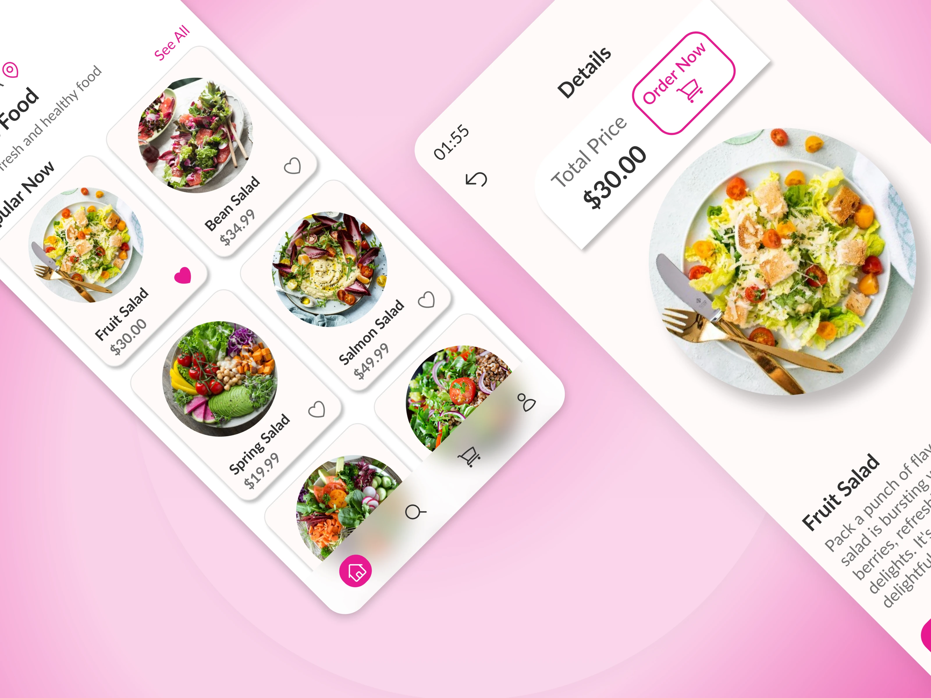 This mobile app design makes food ordering a breeze, whether you're craving a delicious indulgence or a healthy pick-me-up.