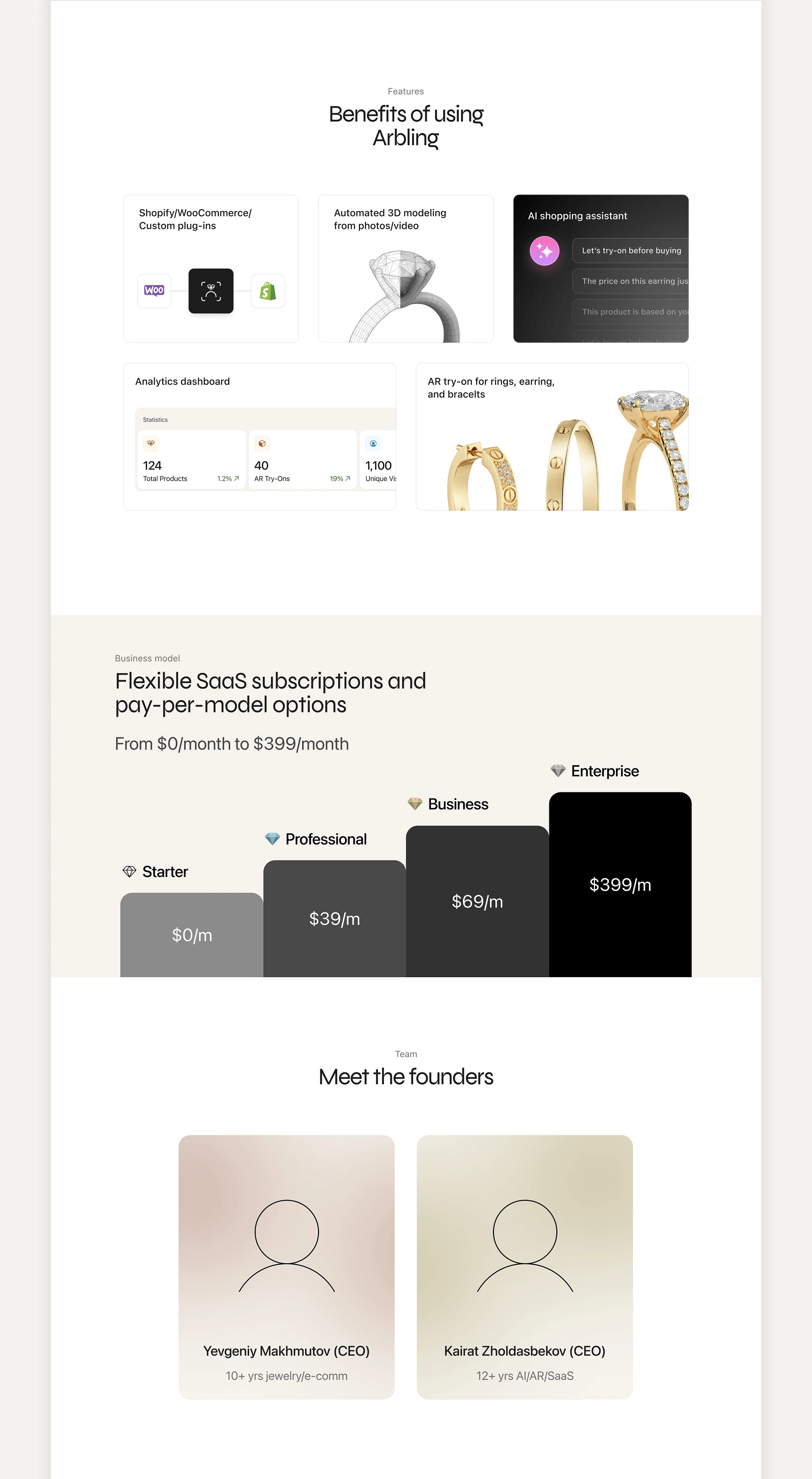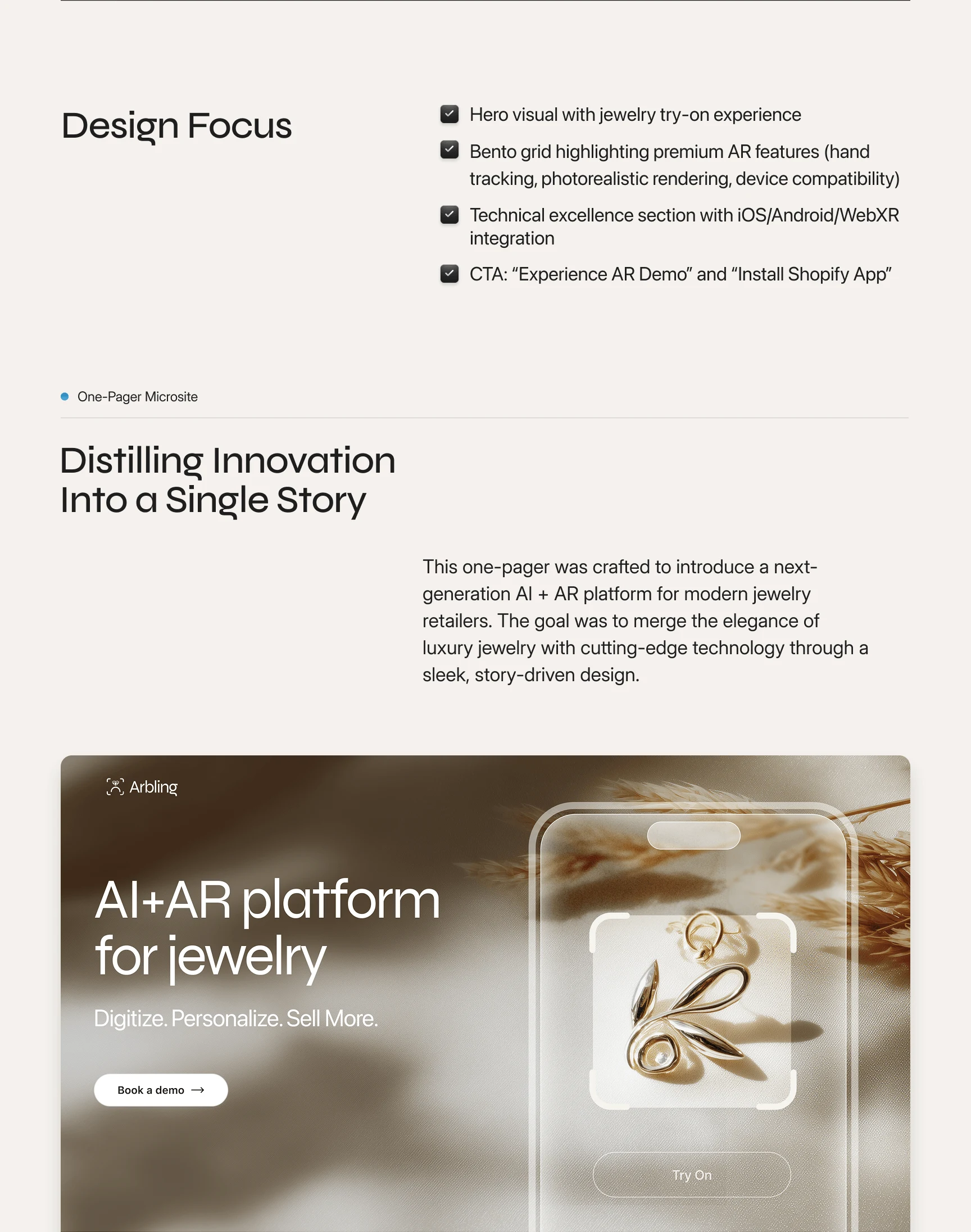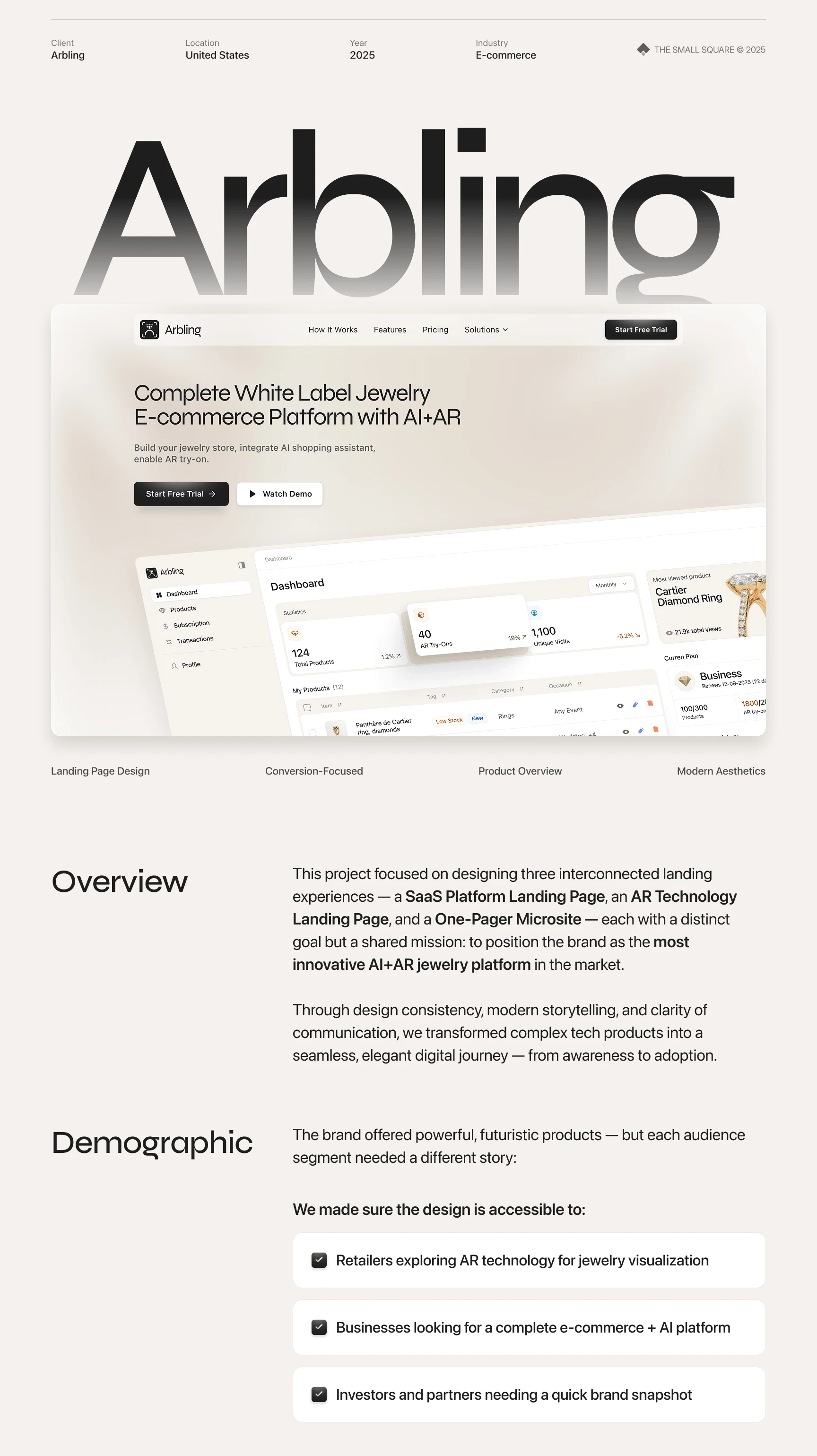 Arbling had one product but three completely different audiences: retailers who wanted a Shopify plugin, luxury brands who cared about the AR experience.