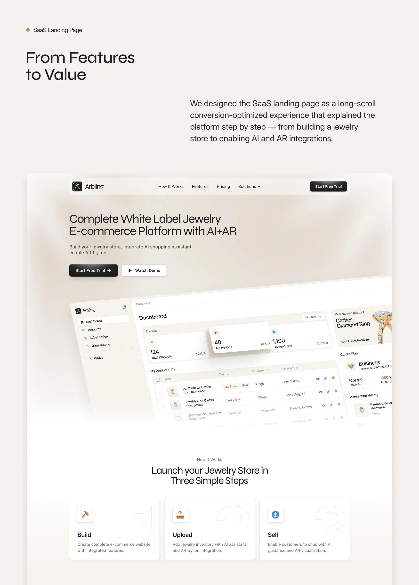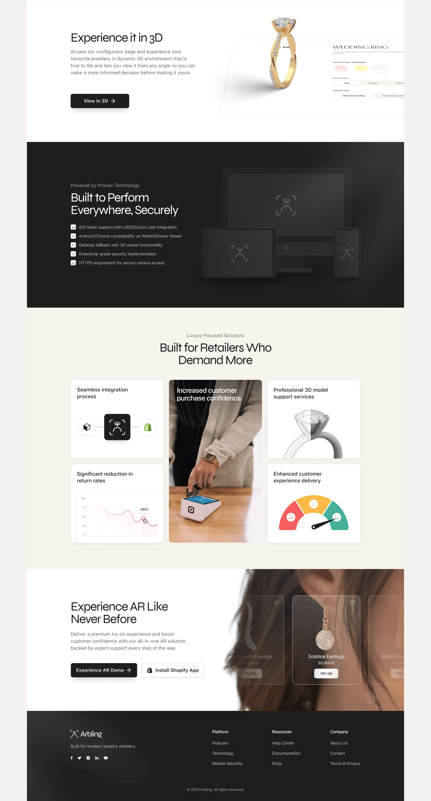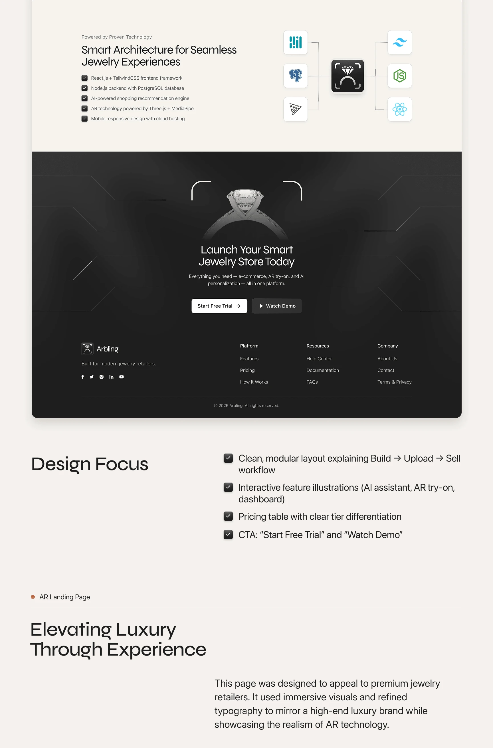 Arbling had one product but three completely different audiences: retailers who wanted a Shopify plugin, luxury brands who cared about the AR experience.