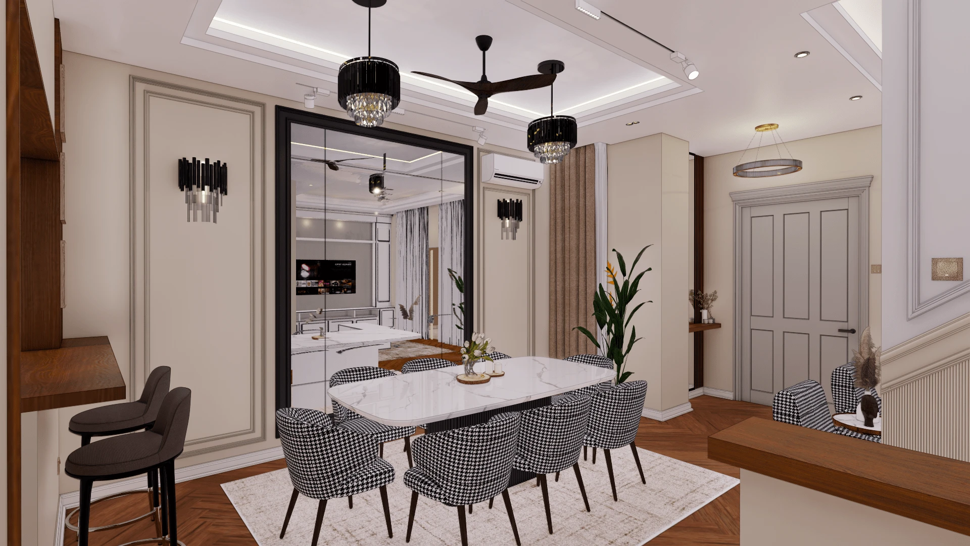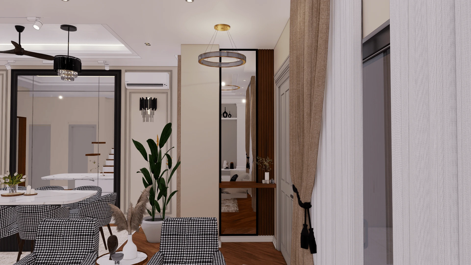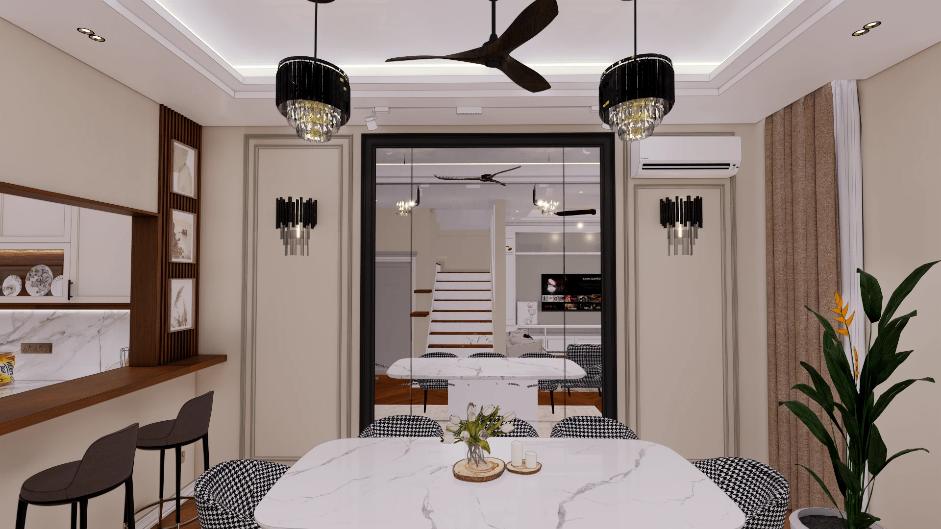 Designed a modern luxury penthouse interior with sleek and elegant elements, creating a sophisticated and inviting living space.