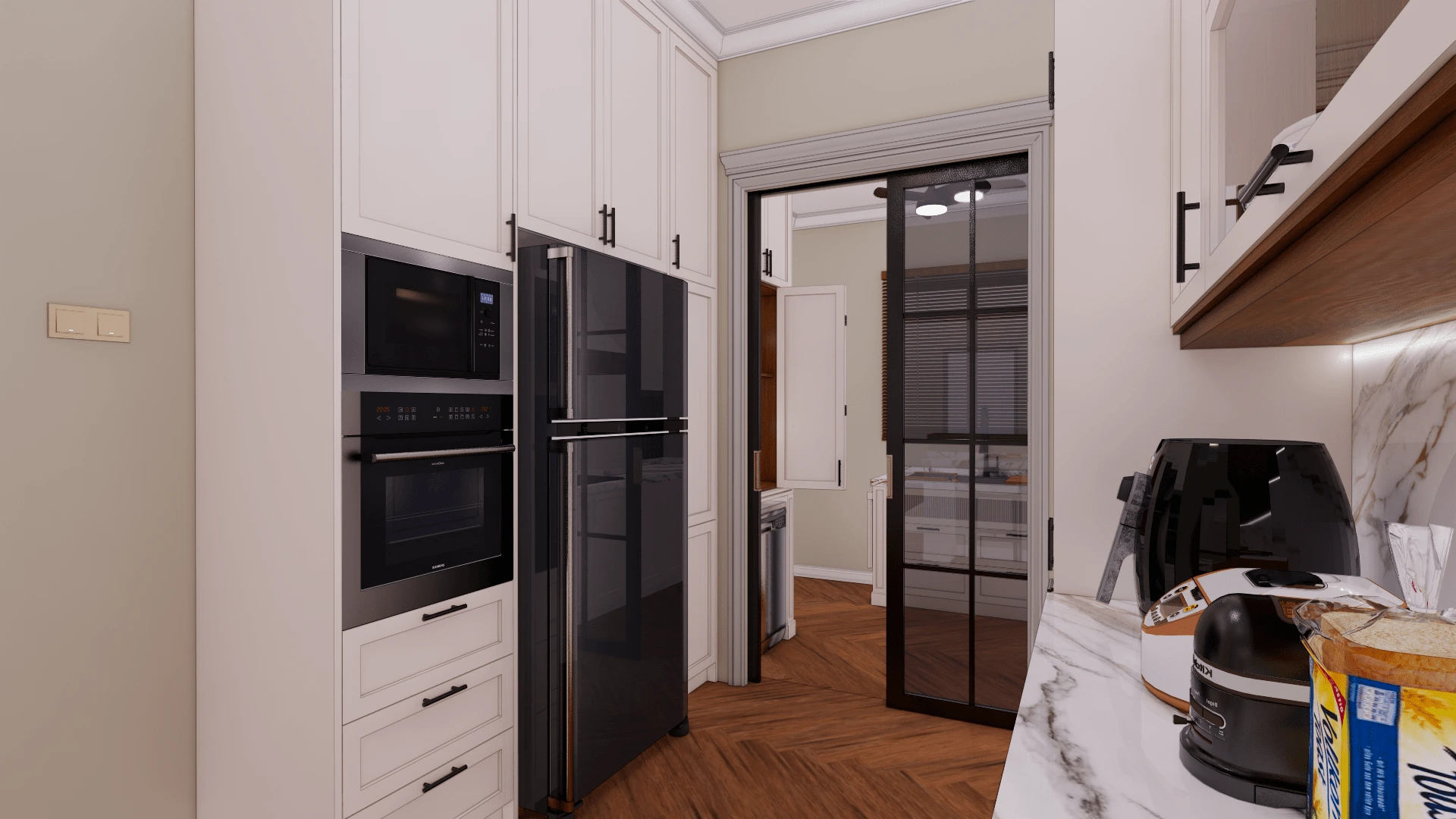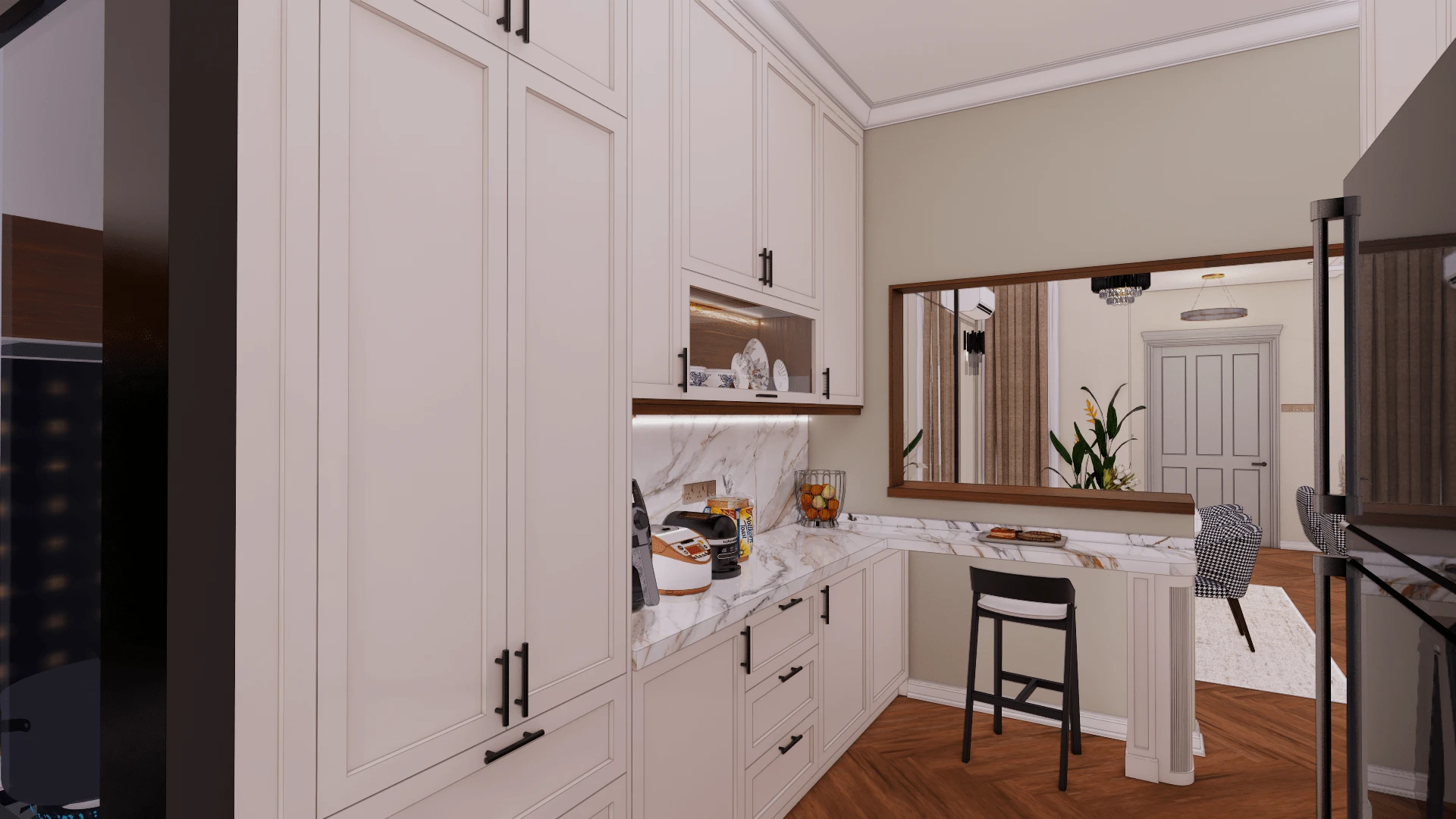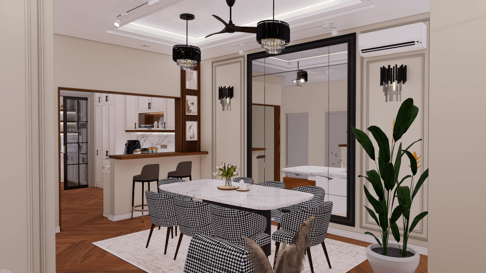 Designed a modern luxury penthouse interior with sleek and elegant elements, creating a sophisticated and inviting living space.