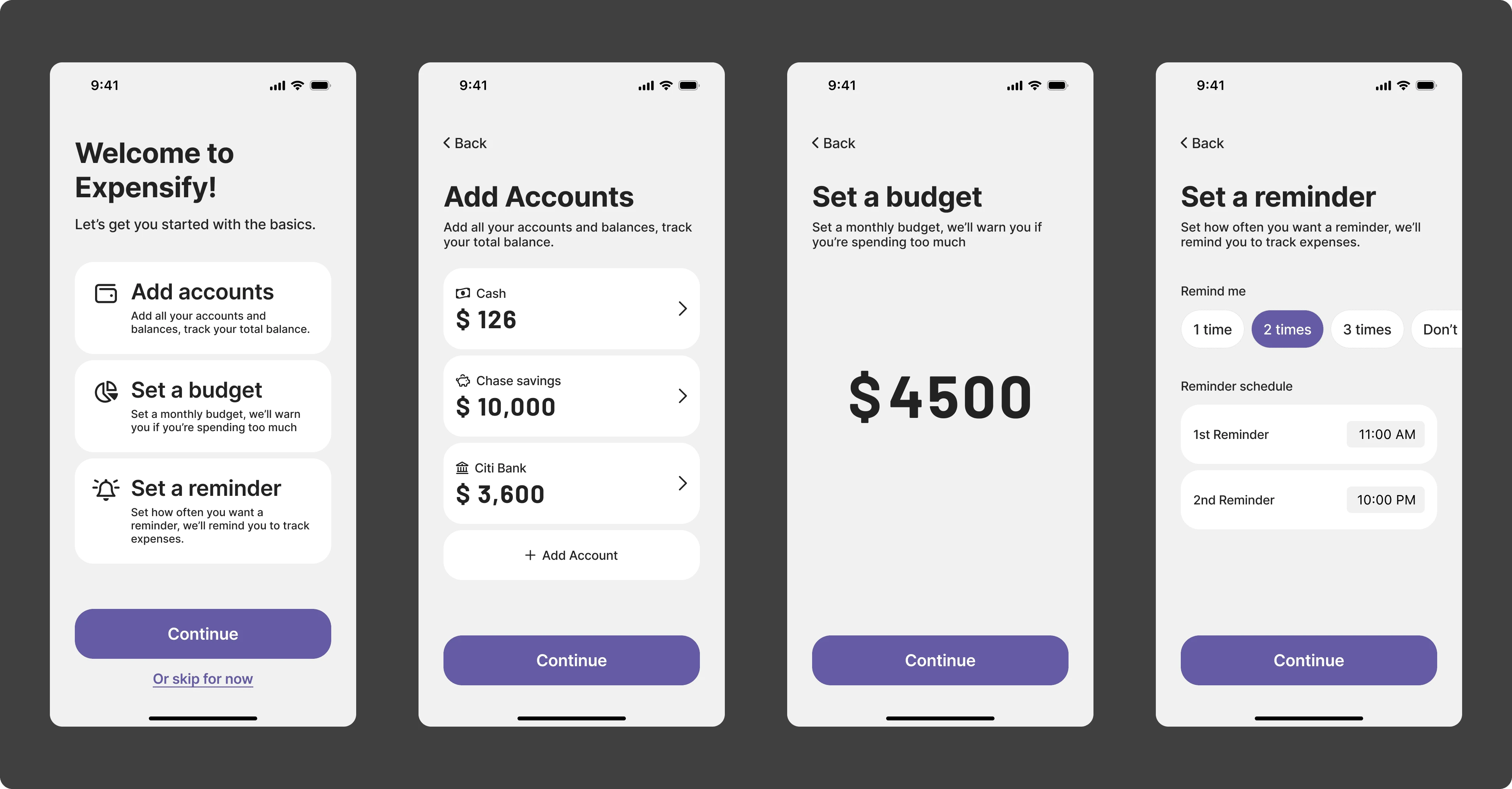 UI design for Expensify - an expense tracker app that helps users set a budget, track their expenses and gain clarity over their finances.