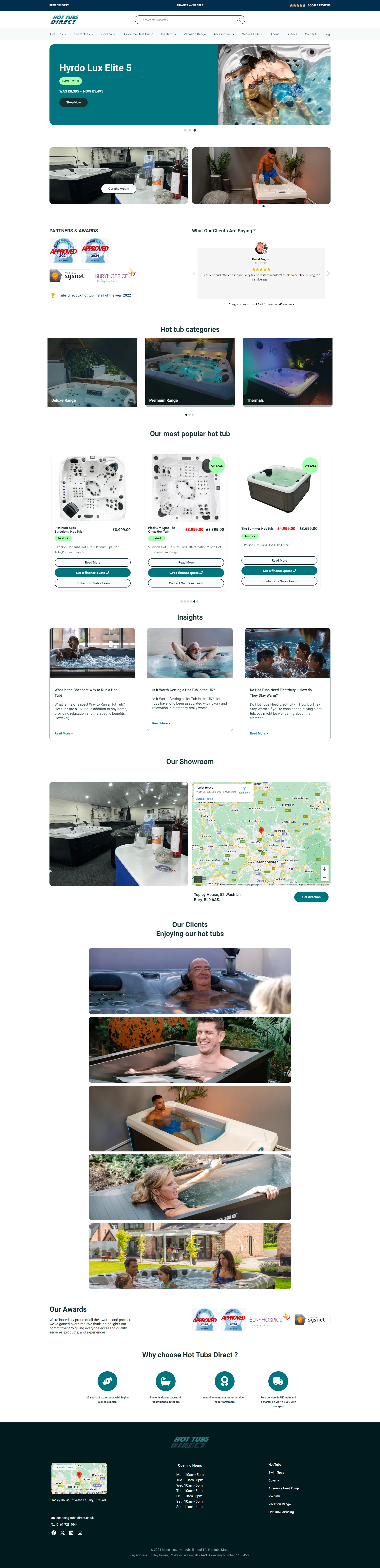 Challenge: Tubs-Direct, a popular UK-based business with over 4,000 monthly visitors, needed a refreshed homepage to better engage their audience and showcase content related to the affordability and benefits of owning a hot tub. The challenge was to redesign the homepage while maintaining high traffic and improving the overall user experience.
