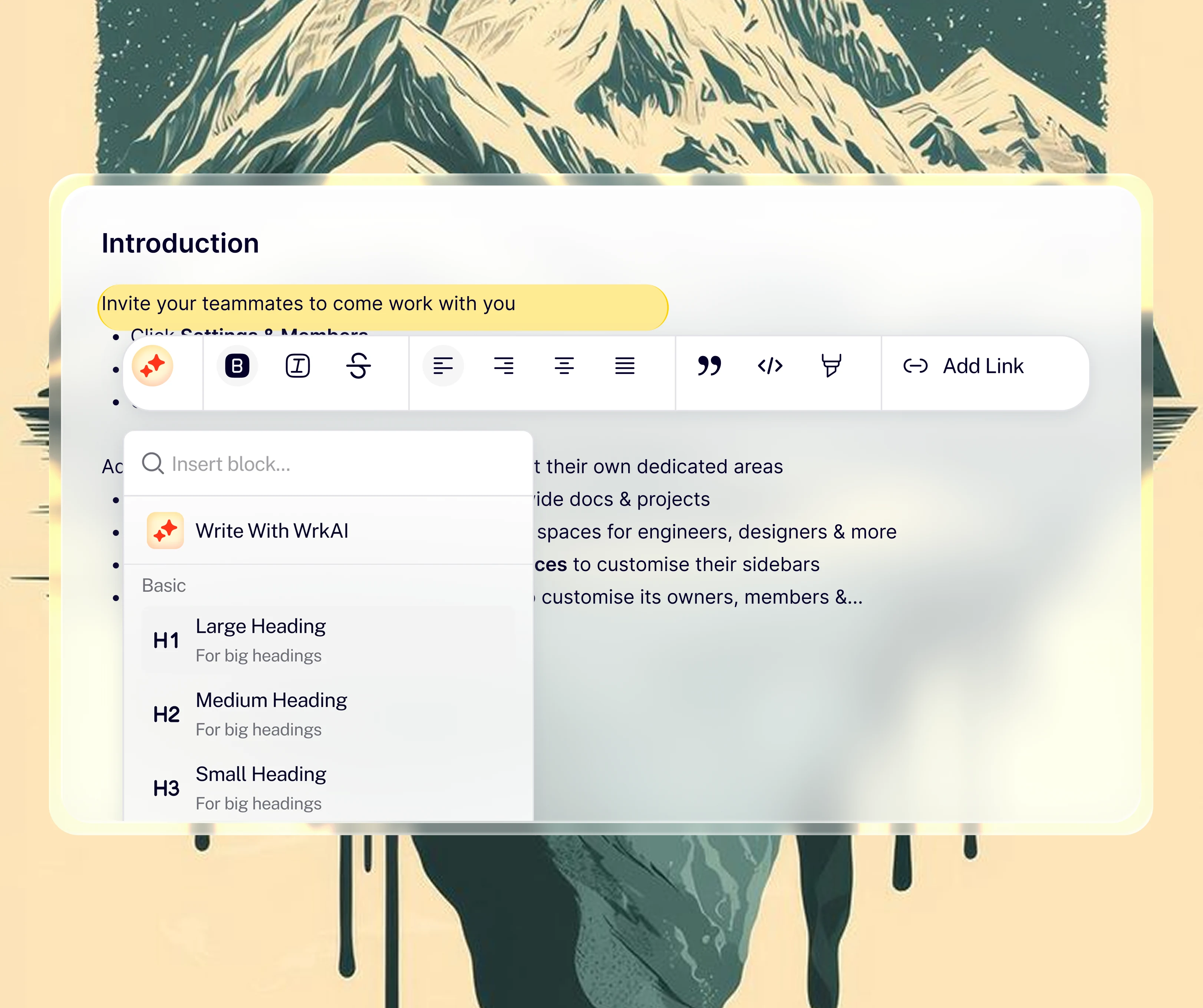 Teams often juggle tasks, docs, and decisions across scattered tools. This leads to lost context, slow handoffs, and duplicated work. WrkOS needed a simple workspace that reduced friction and allowed teams to move faster.