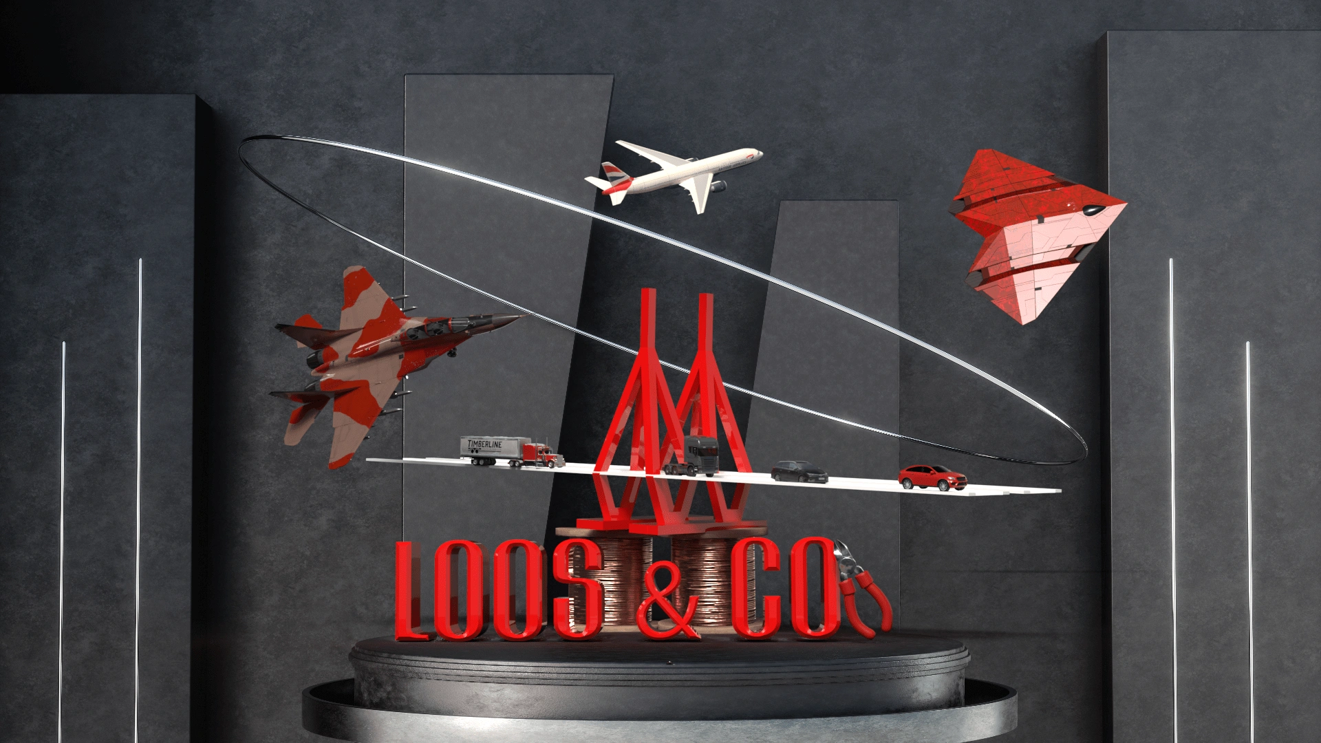 A 3D image describing the company Loos and Co and what they offer through their vast services.